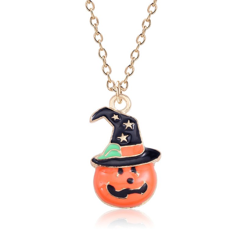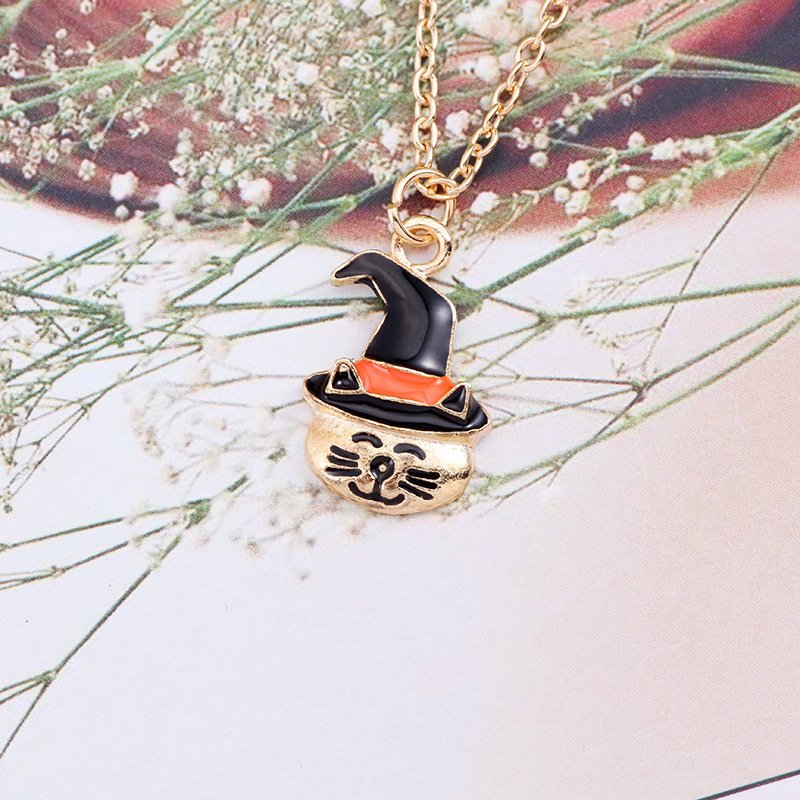 Halloween Oil Drop Pumpkin Cat Necklace Creative Clavicle Chain Pendant Fashion Jewelry Accessories
