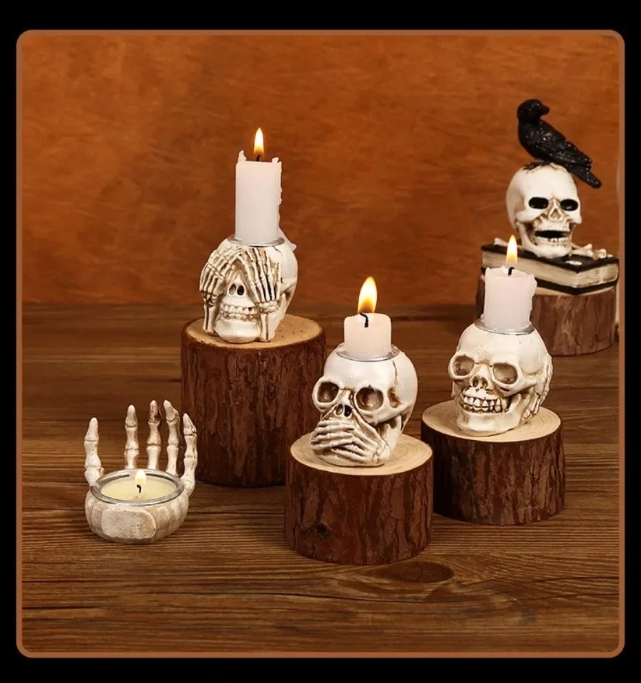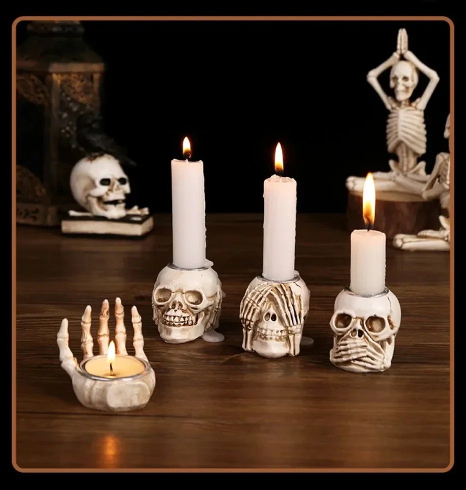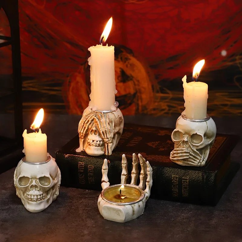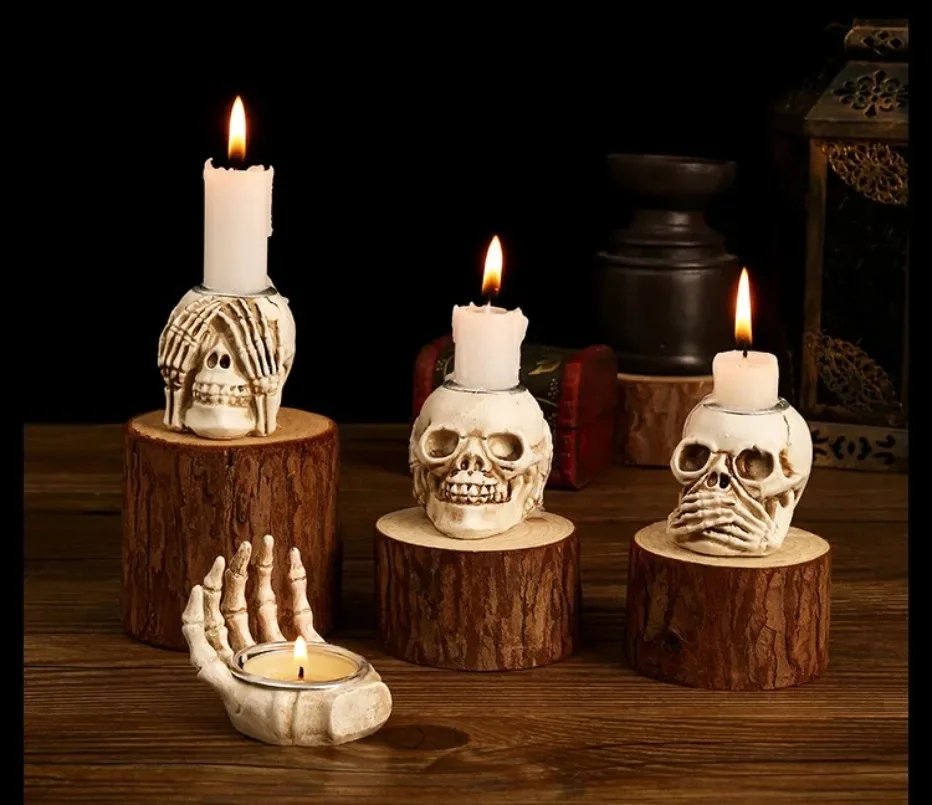 Halloween Skull Candle Holder Resin Wizard Hand Candlestick Festival Home Happy Haunting party Decor Friend Gift