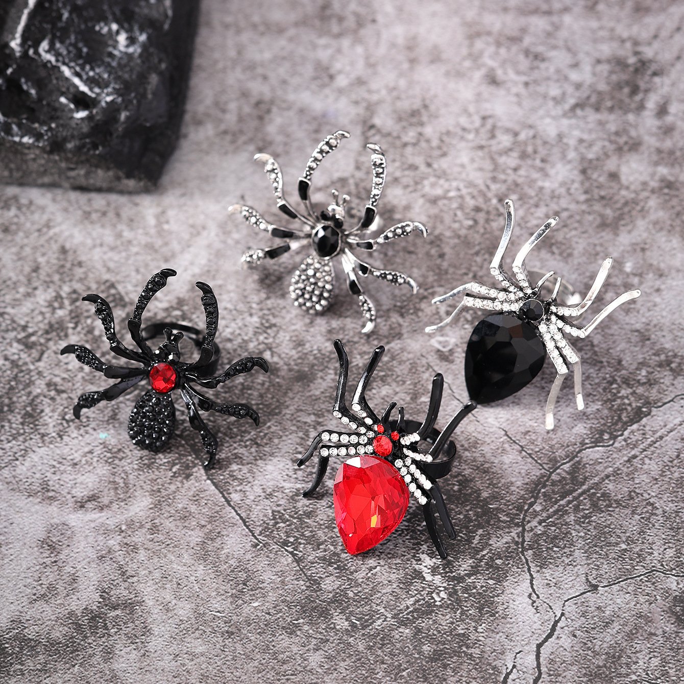 Halloween Spider Ring With Rhinestone Ins Personality Fashion Open Rings For Women Jewelry Accessories