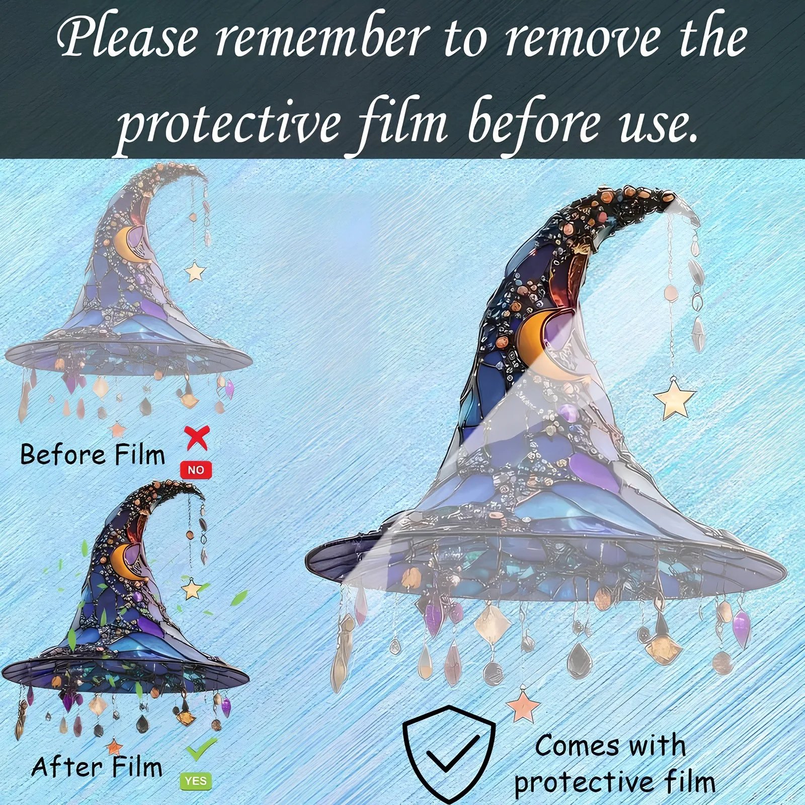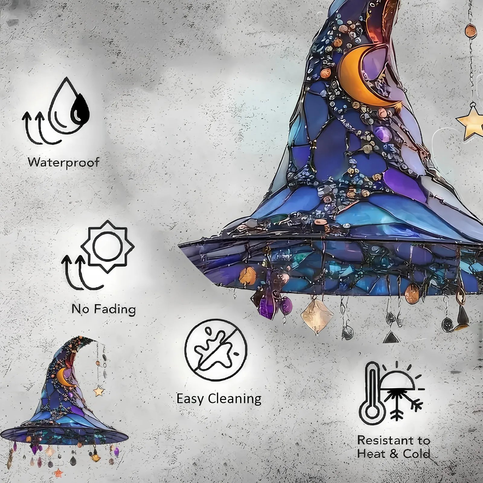 Halloween Witch Hat Ornament Blue Acrylic Hanging Decor Glow in the Dark Party Supplies Moon Star Charm Spooky Home Decoration