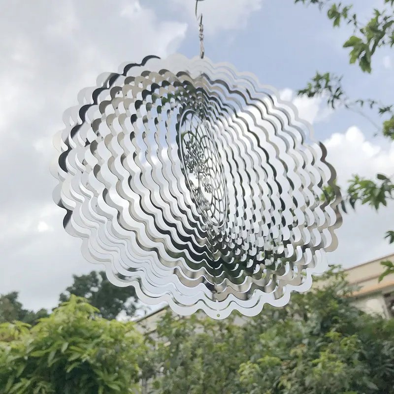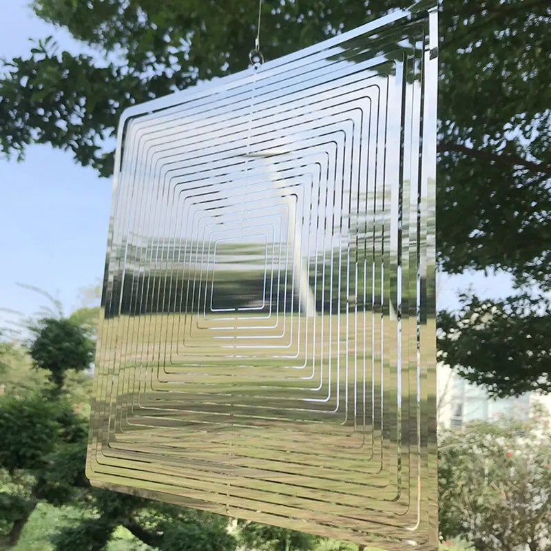 Heart Square Drop Shape Stainless Steel 3D Rotating Wind Spinner Chime Metal Decor Home Garden Decoration Outdoor Indoor Rooms