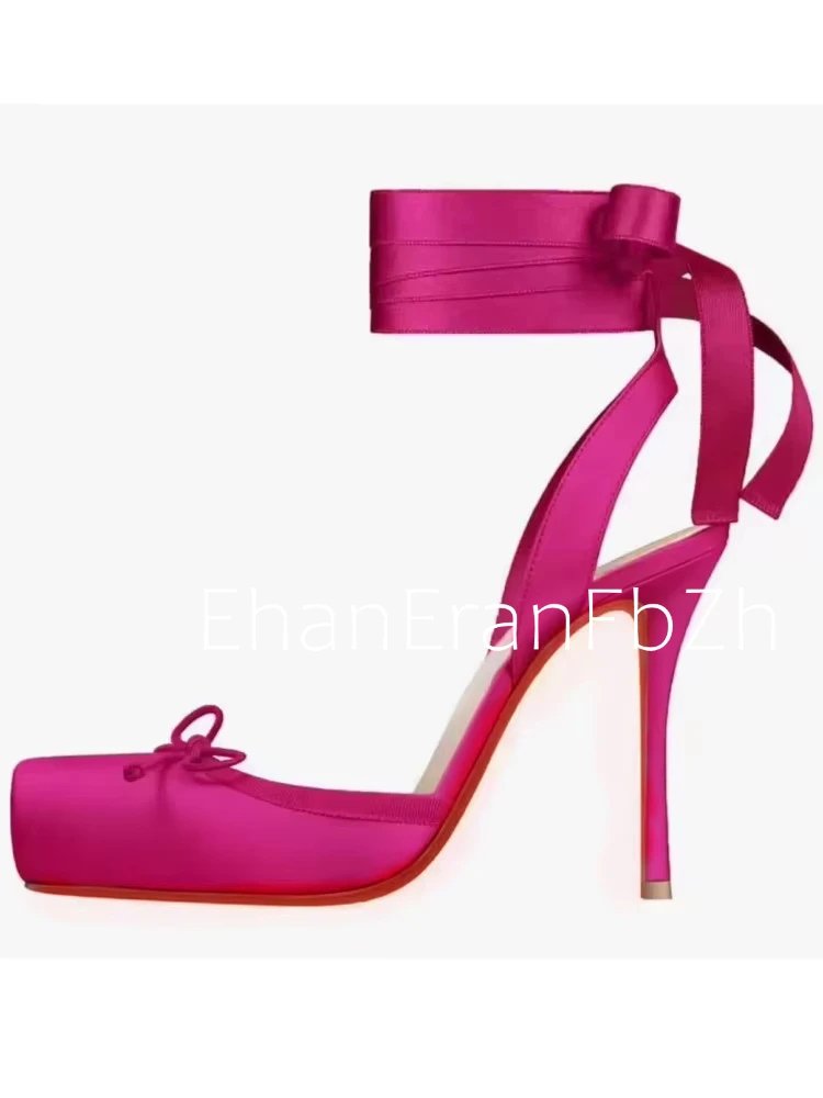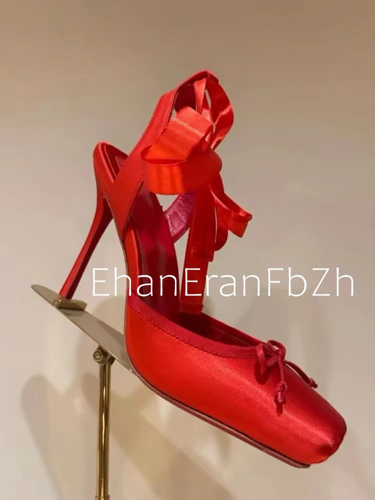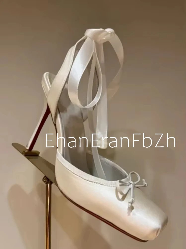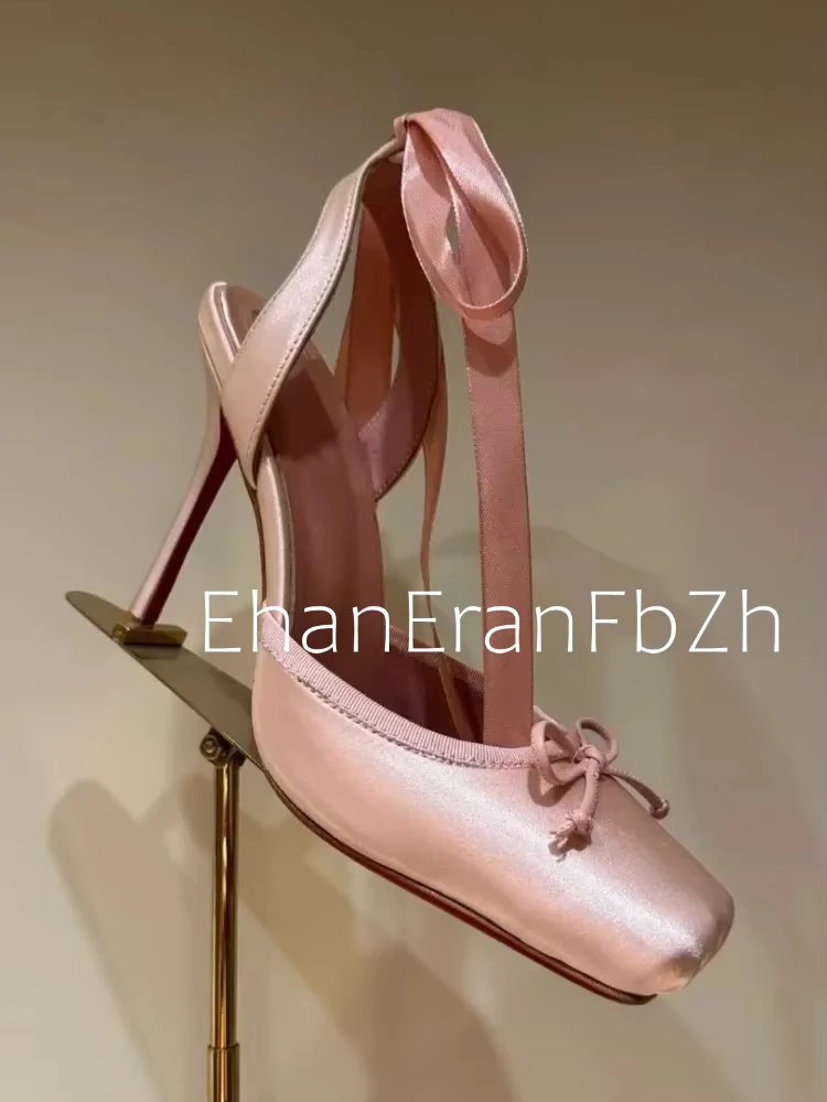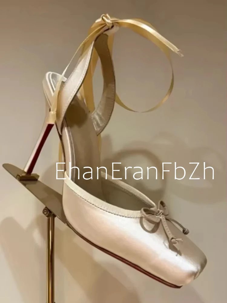 Ladies' New Summer Square Satin High-heeled Sandals with Ankle Straps, Fashionable Party and Banquet Ballet High-heeled Shoes