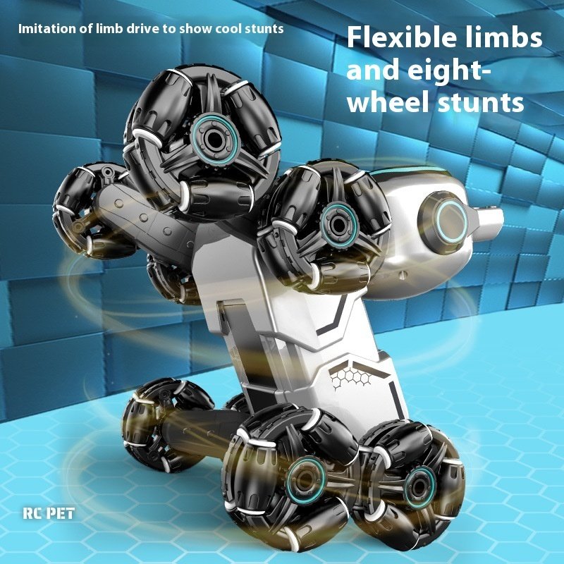 Color: Stunt robot dog [Silver Gray] Gesture Remote Control, stunt robot dog [Silver Gray] double remote control