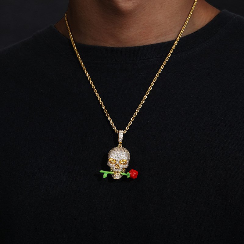 Luminous Epoxy Rose Skull Pendant