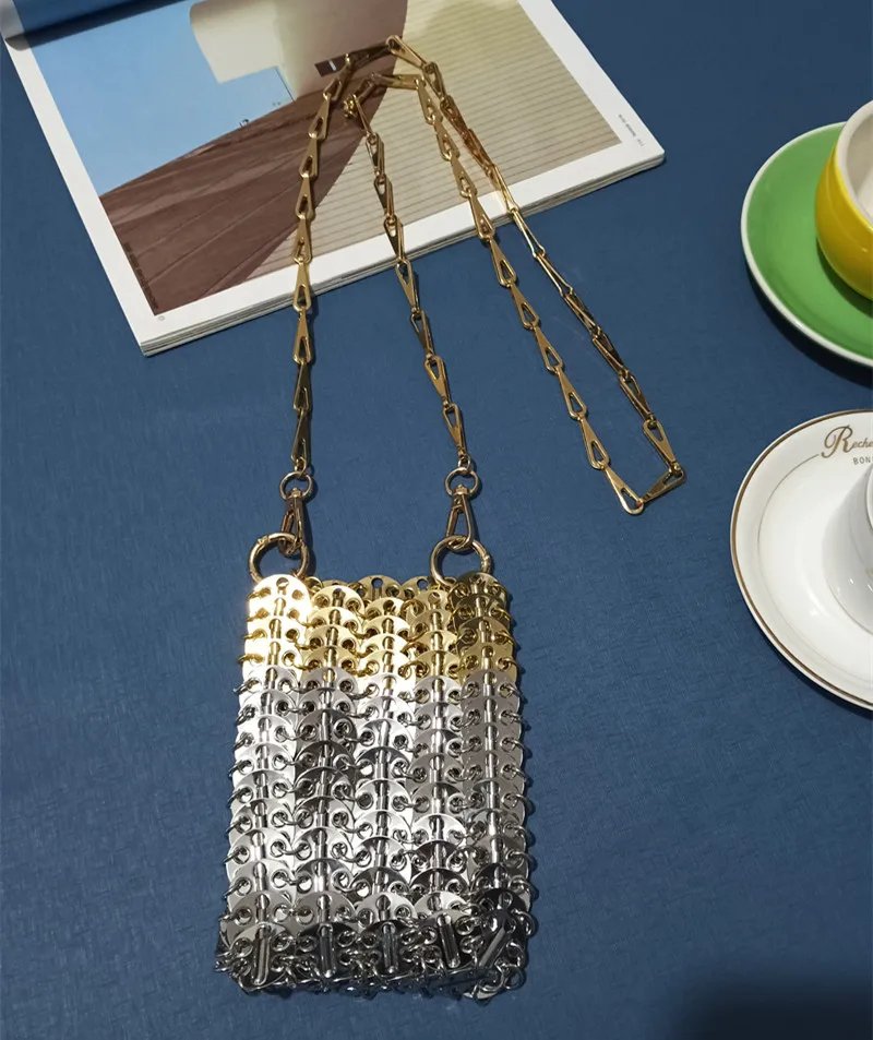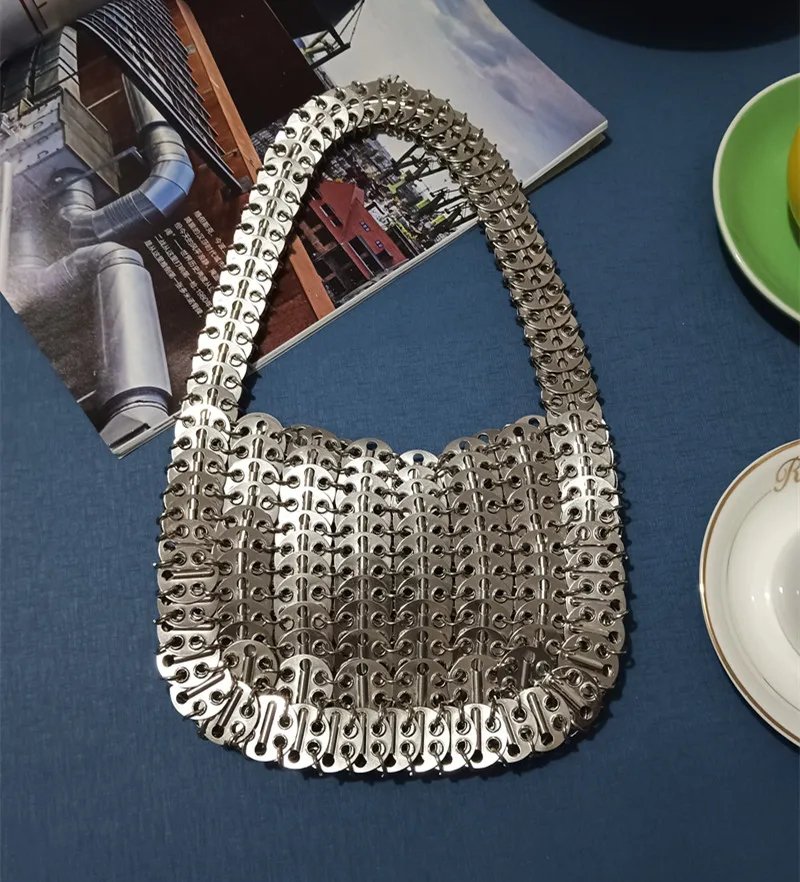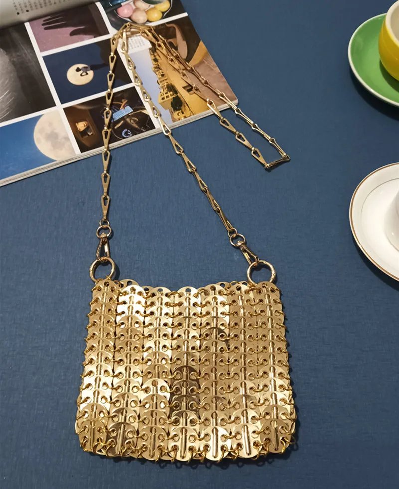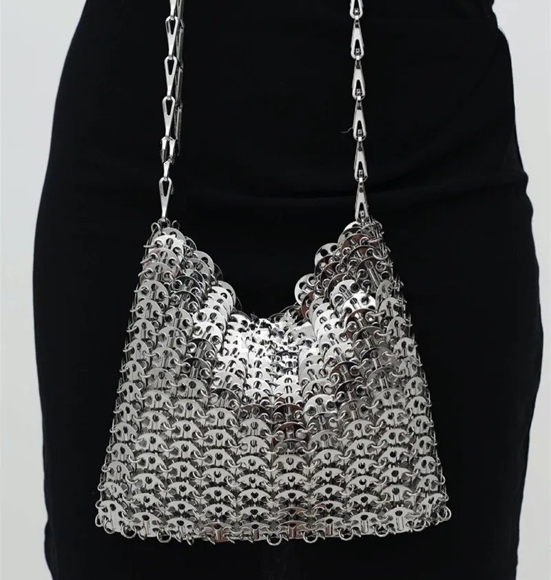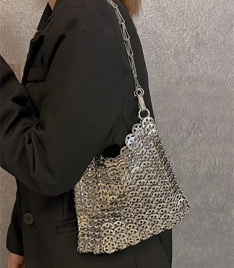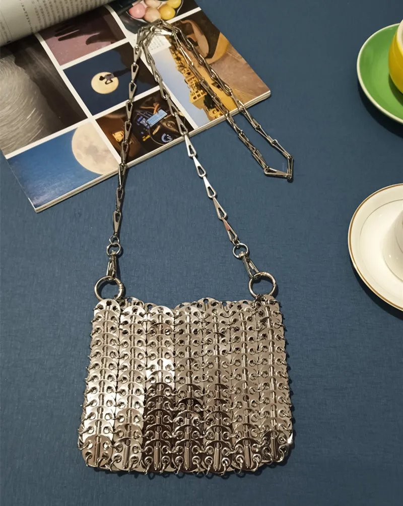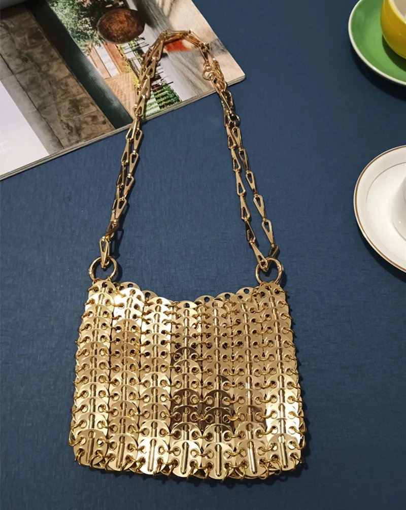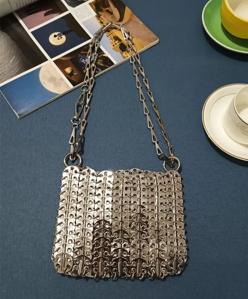 Luxury Designer Women's Bag Trend Hand Woven Hollow Metal Chain Tote Bag Clutch Female Bag Travel Holiday Shoulder Bag Handbag