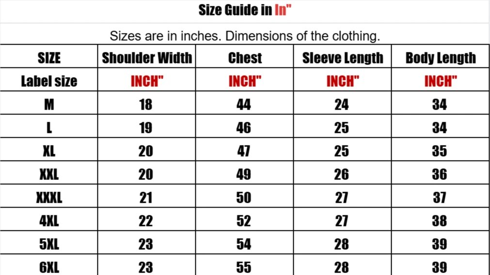 4XL, XXXL, XXL, XL, L, M, 6XL, 5XL