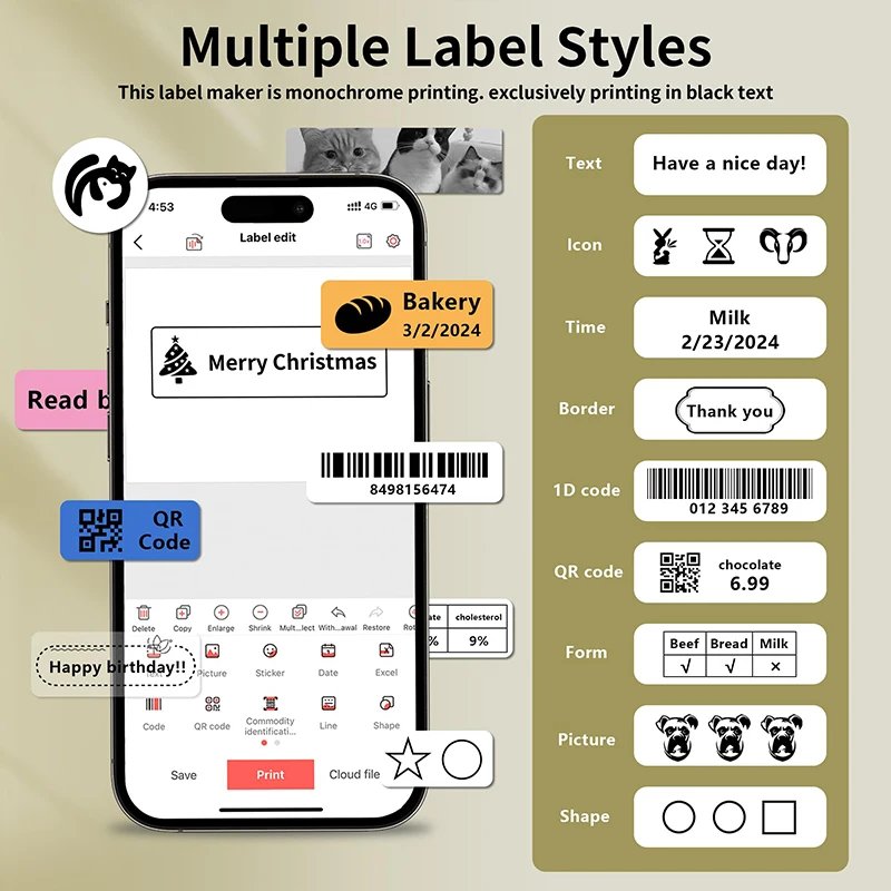 Marklife P15 Mini Portable Thermal Printer Wireless Bluetooth Label Tag Maker For Home Office Labeling Sticker Machine With USB