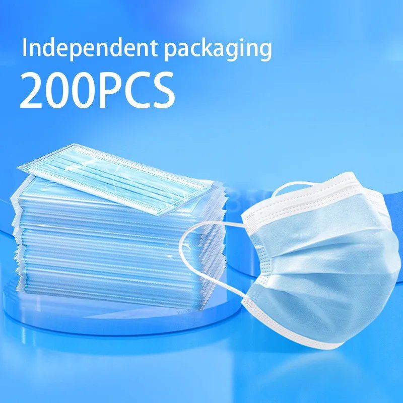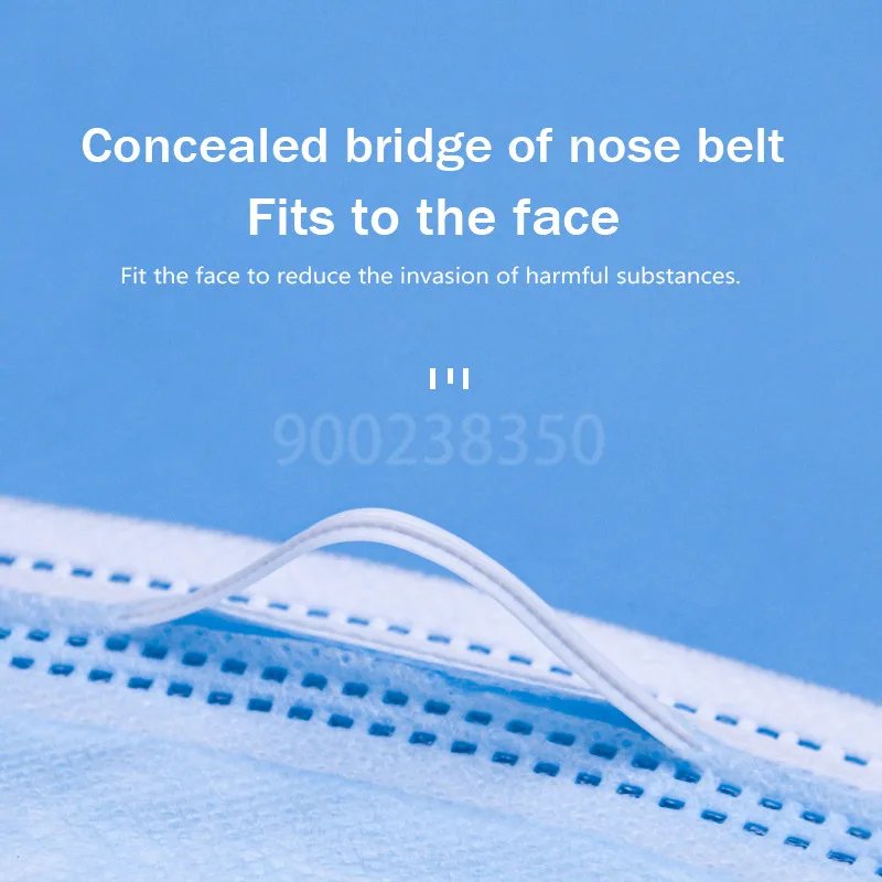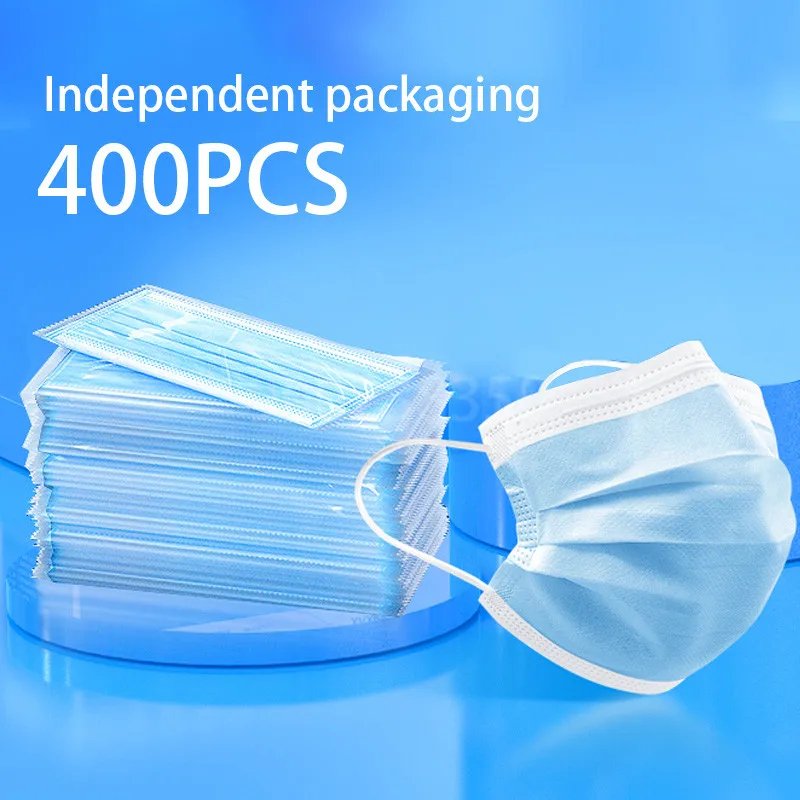 Mascarilla desechable para adultos, paquete individual de tapabocas con filtro, no tejida, transpirable, color azul, 10-500 piezas
