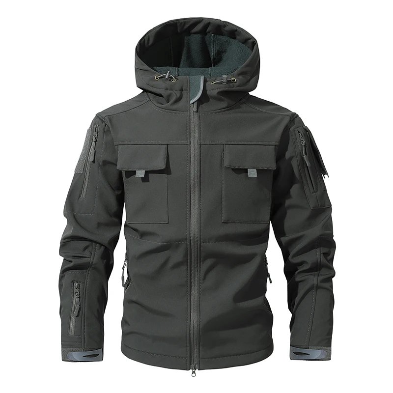 Men Lurker Shark Skin Soft Shell Tactical Jacket Waterproof Fleece Hooded Coat Hunt Clothes Autumn Solid Outdoor New Jacket Men