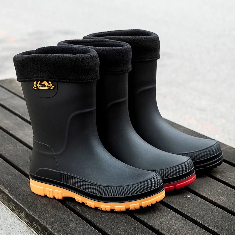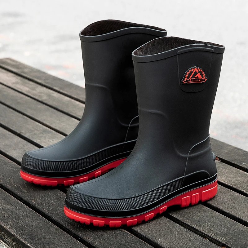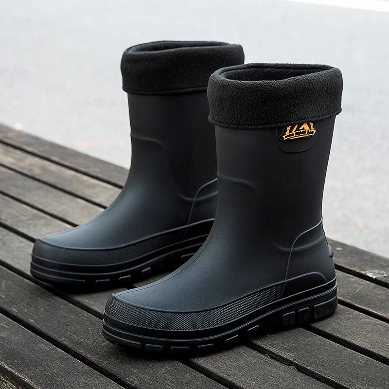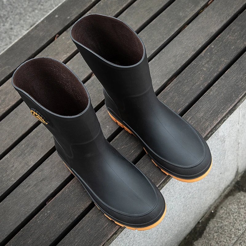 Men's Medium Tube Non-slip and Wear-resistant Rubber Shoes Fashion Versatile Rain Boots Adult Casual Fishing Shoes Work Shoes