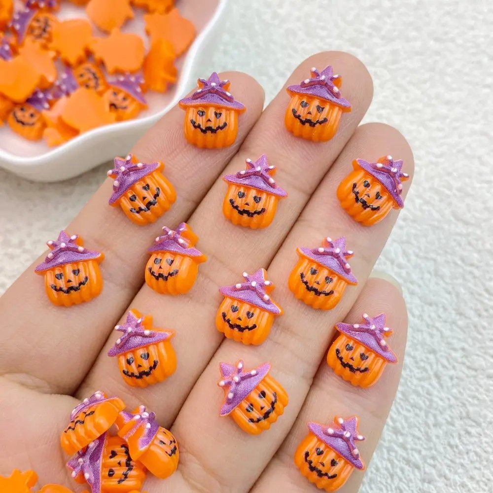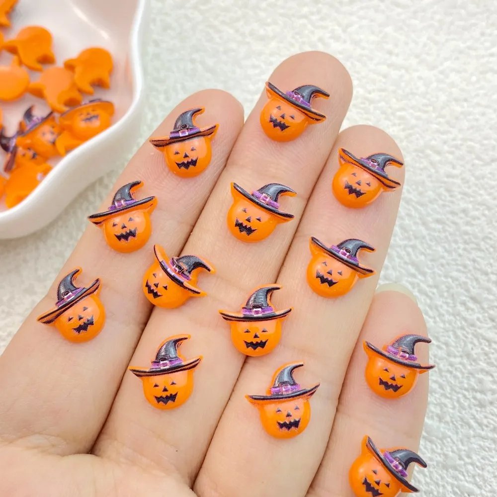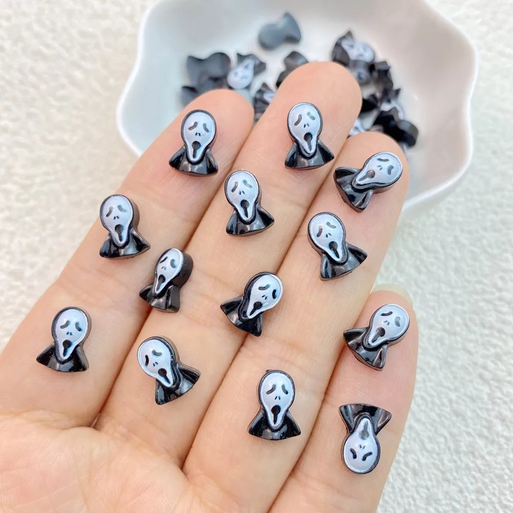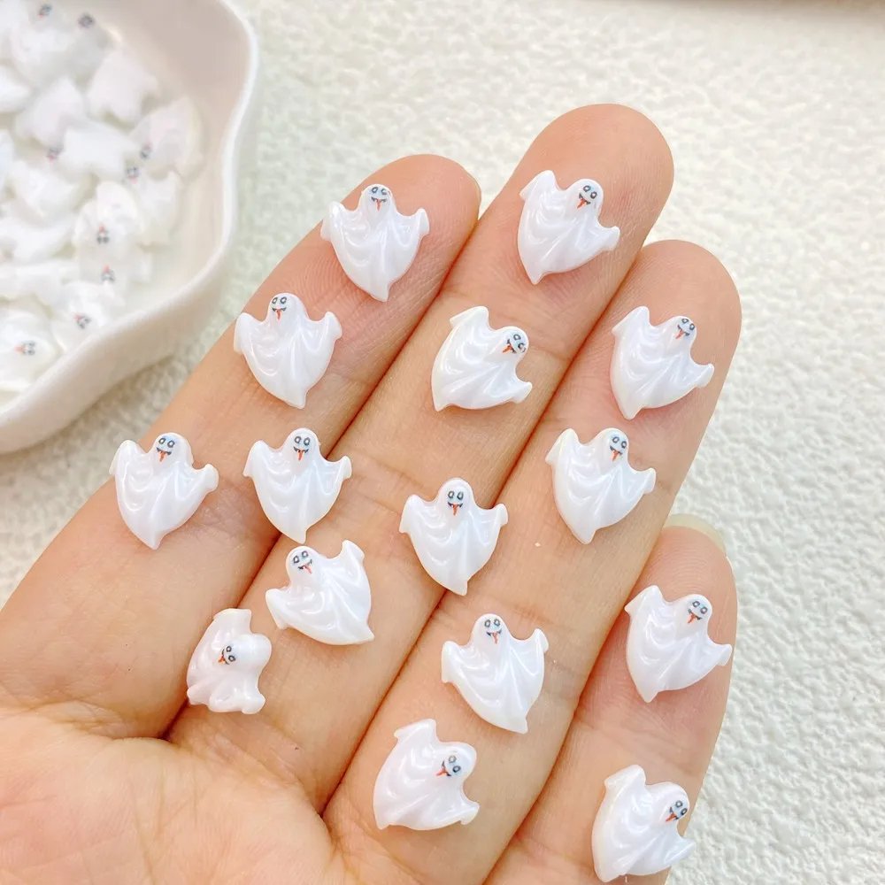 Mini figuras de acción de fantasmas de Halloween para manicura, 50 piezas, de resina, con espalda plana, adornos para lazos para el pelo