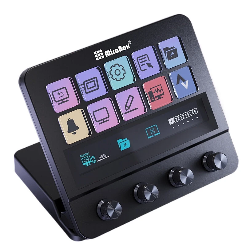 MiraBox MBox N4 Stream Deck with 10 LCD Buttons and 4 Rotary Knobs Live Streaming Controller Touch Screen Customizable Macros Mini Keypad Custom Stream Dock