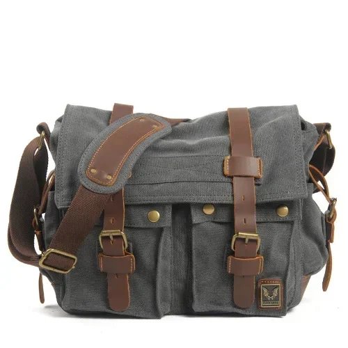 MUCHUAN Canvas Leather Men Messenger Bags Big Satchel Shoulder Bags Male Laptop Briefcase Travel Handbag