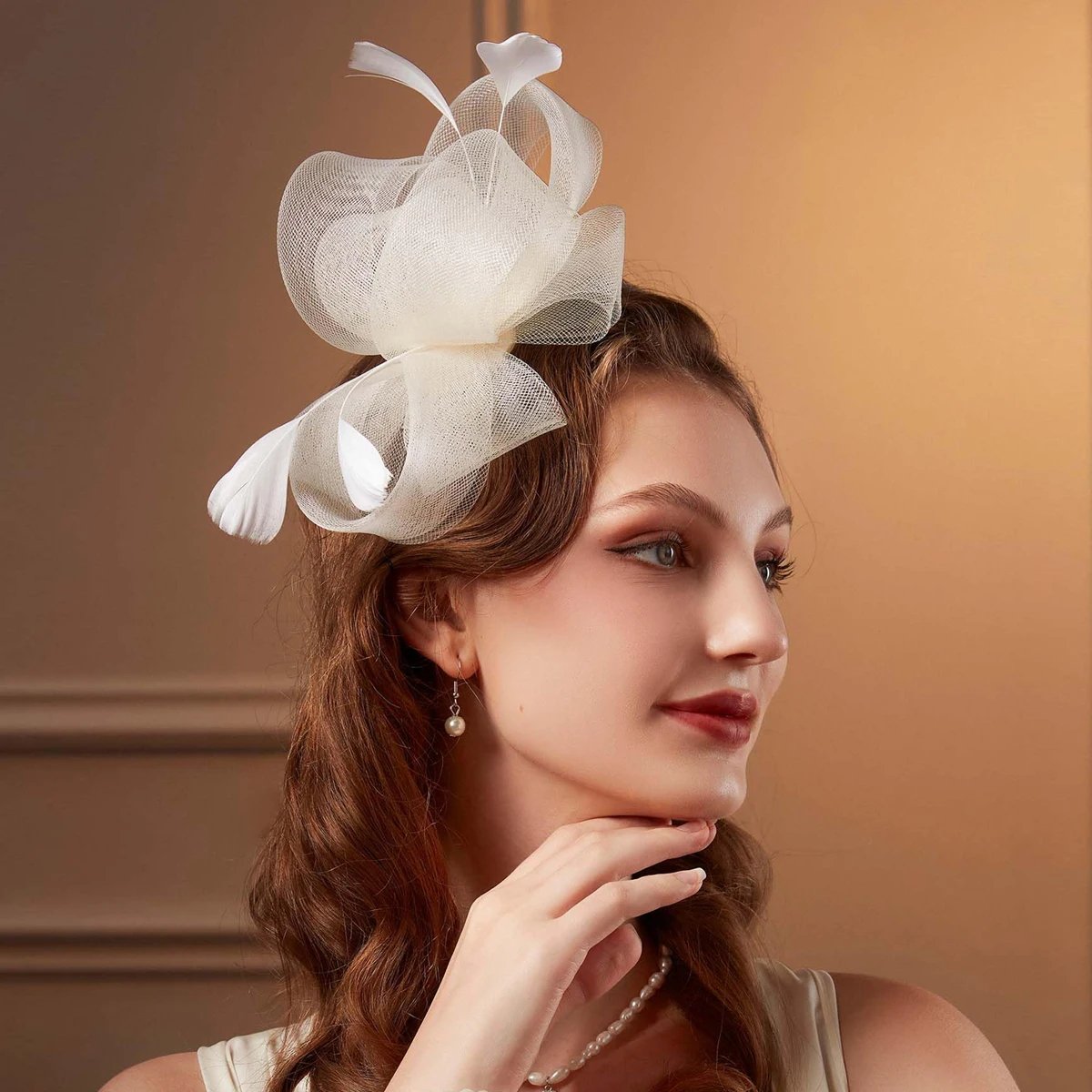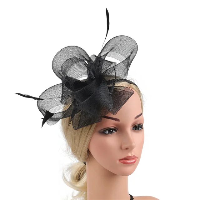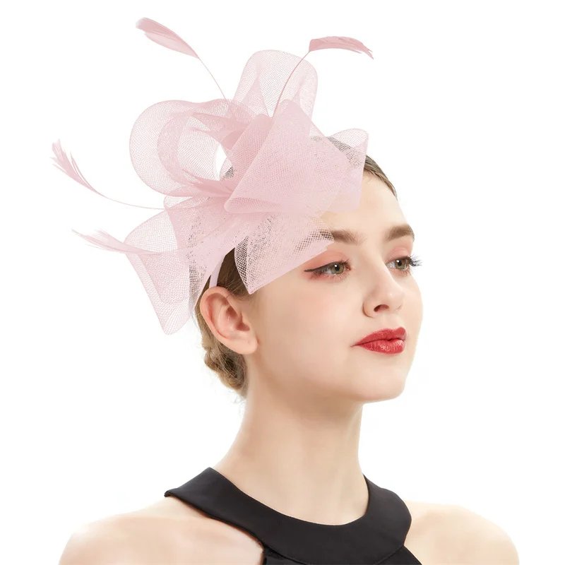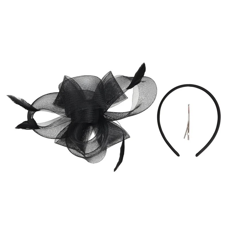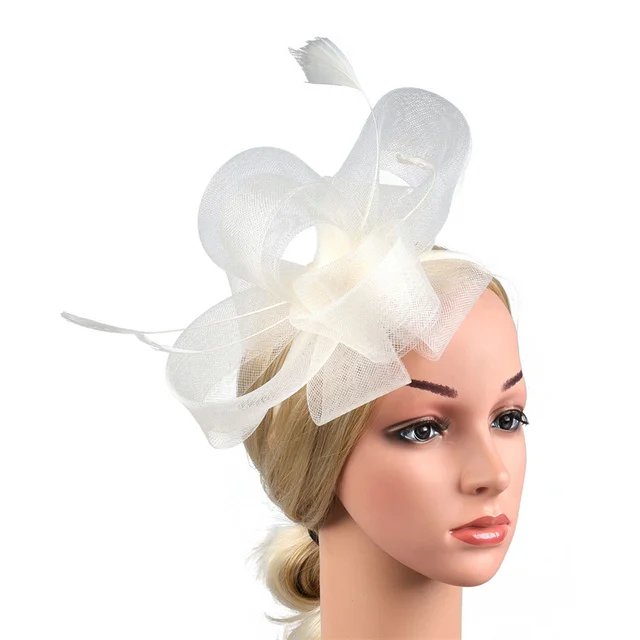 New Bridal Fascinator Bow Hat with Headband and Clips Jockey Feathered Top Hat Wedding Cocktail Tea Party Headpiece for Women