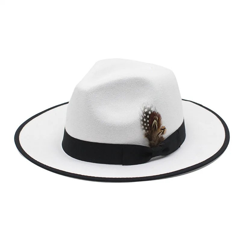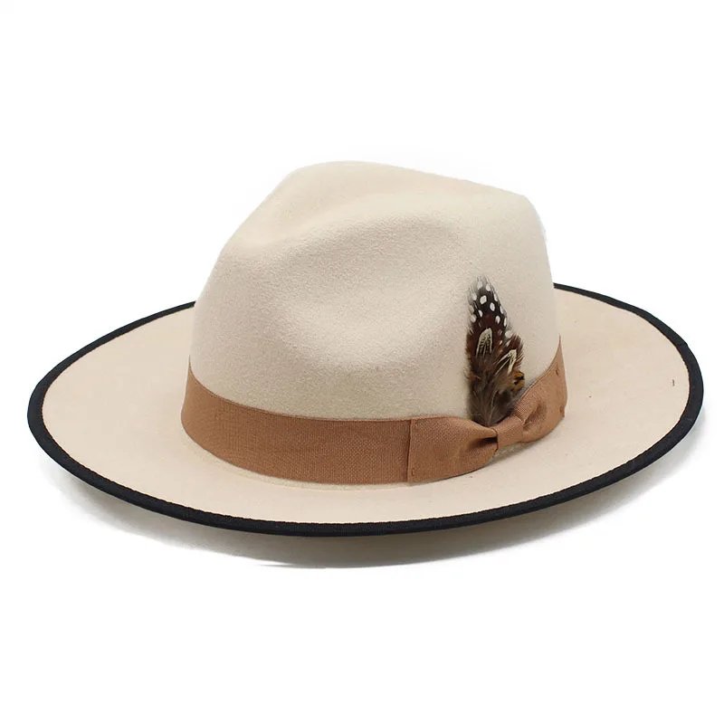 New Hot Selling Unisex Wool Felt Hat with Large Brim Heart Top Design Feather Trim Fashion for Men and Women