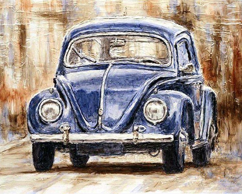 Painting style: Round, Painting size: 20x25cm – Square Rhinestone Image Cross Stitch Mosaic Blue Fashion Car