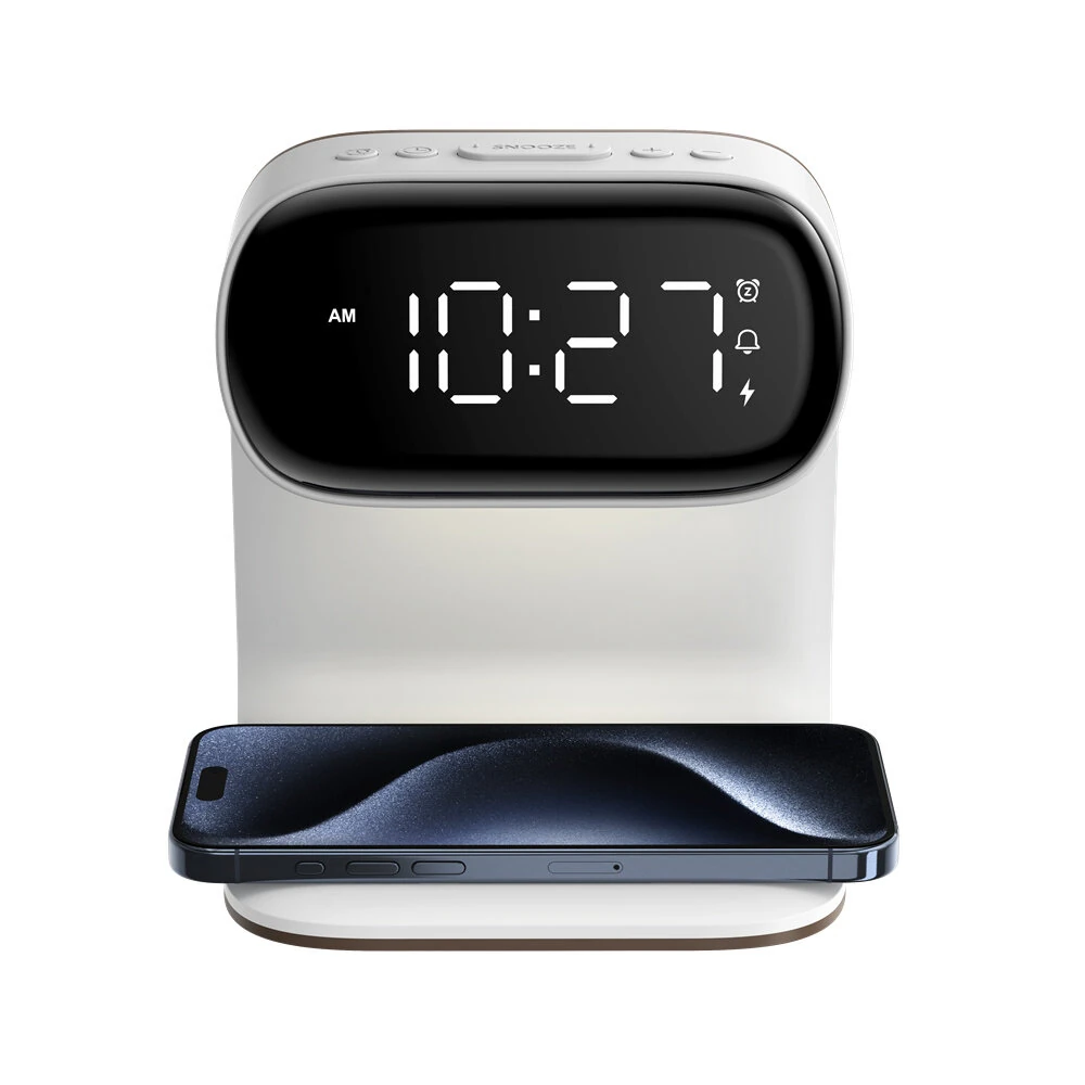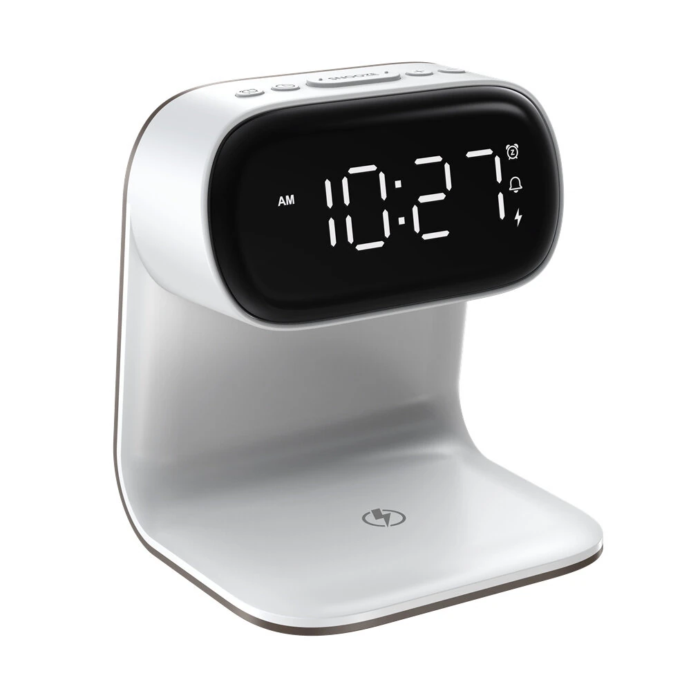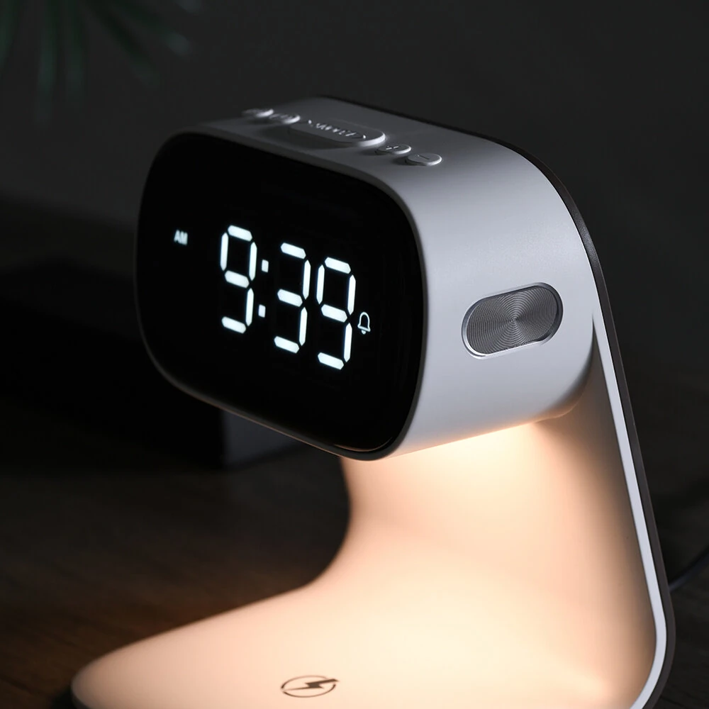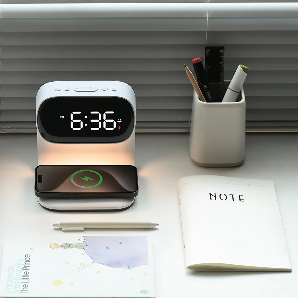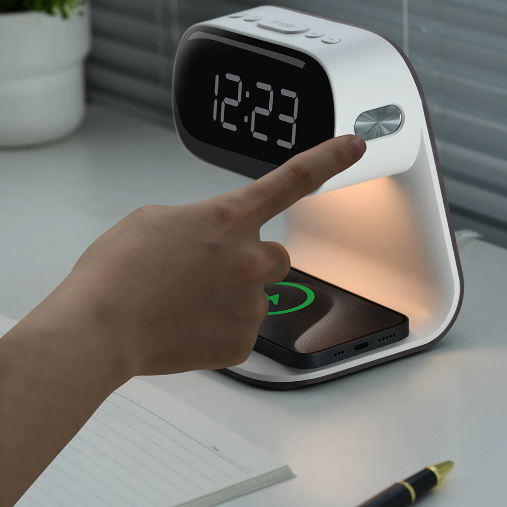 Portable Bedroom Touch Control Bedside Table Lamp Dimmable Digital Alarm Clock Wireless Charging Station for Bedroom, Bedside Office