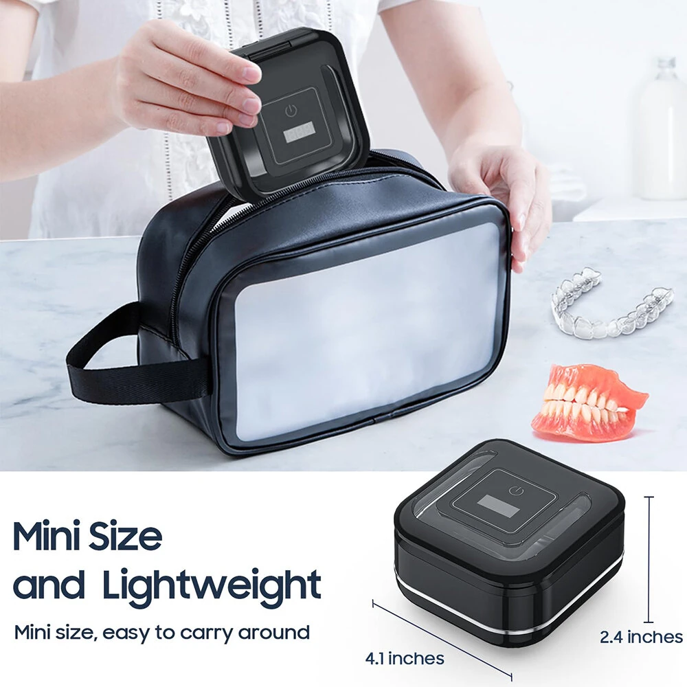 Portable Ultrasonic UV Cleaning Machine Mini Ultrasonic Braces Cleaning Machine UV Invisible Denture Cleaner 42,000Hz Deep Cleaning