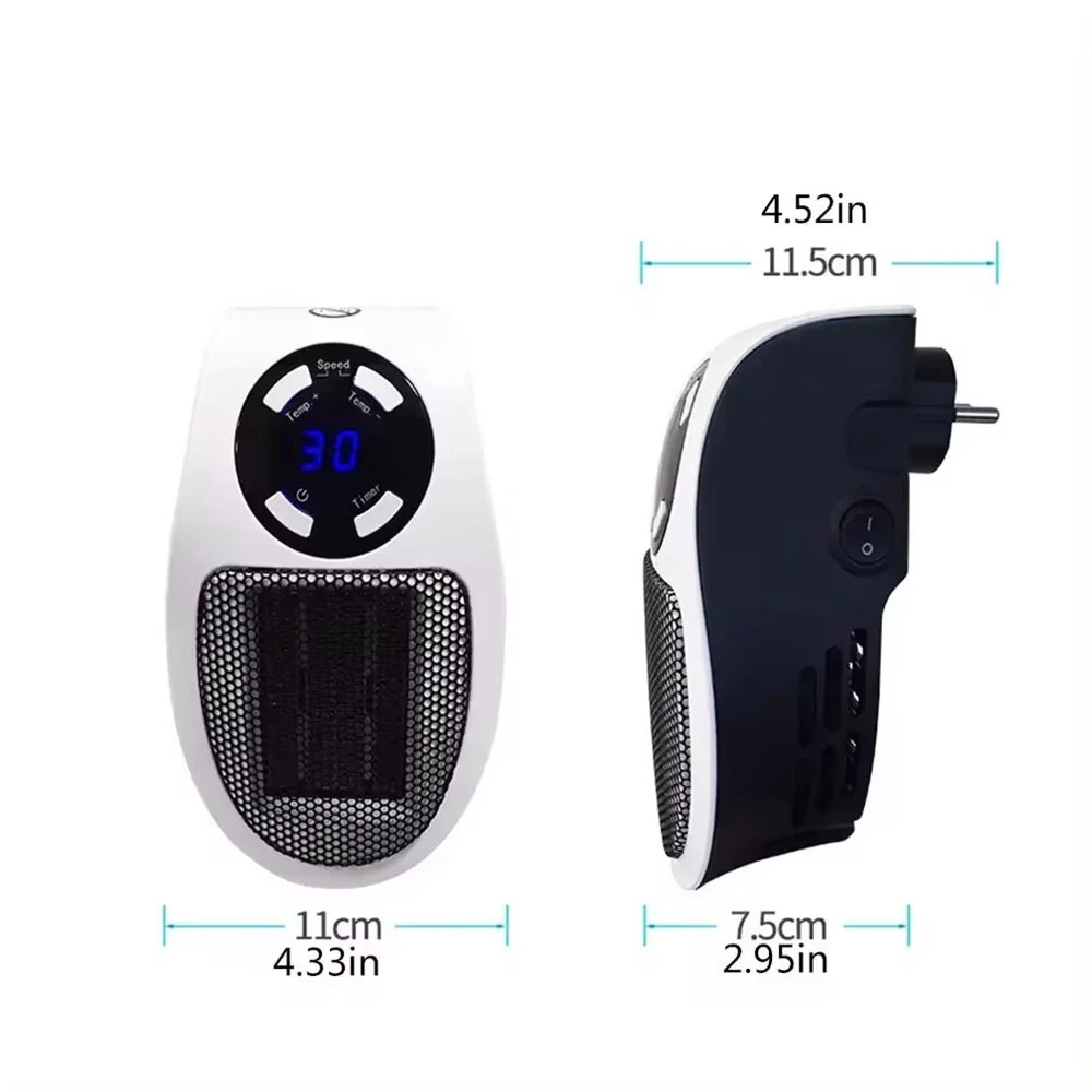 Portable Wall-Mounted Electric Heater 500W Low Energy Consumption Adjustable Thermostat LED Display Overheat Protection Remote Control Rotation Plug