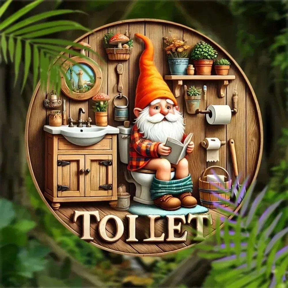 &quote;Whimsical Dwarf Restroom Sign Round 9 Inch – Rustic Cafe/Bar/Pub Decor, Fantasy Themed Toilet Plaque for Indoor & Outdoor