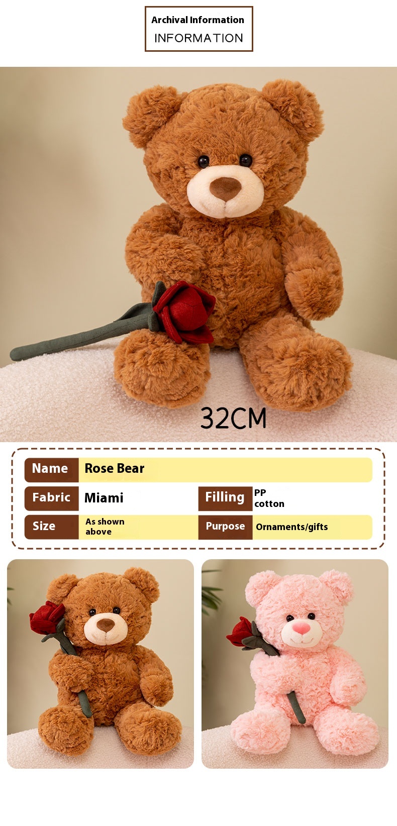 Rose Net Red Bear Plush Doll Toy
