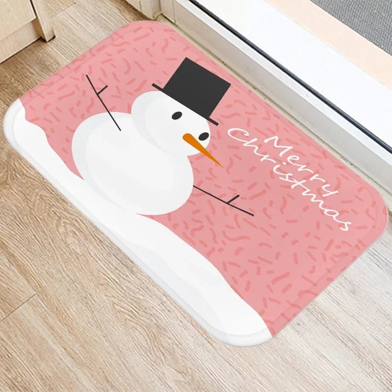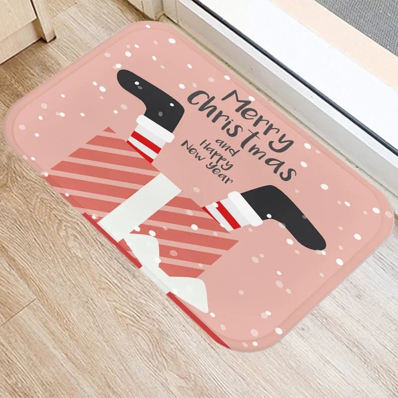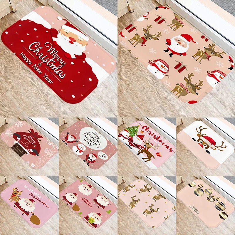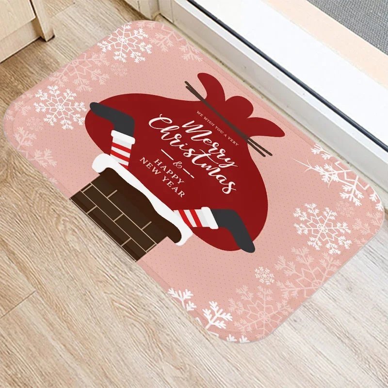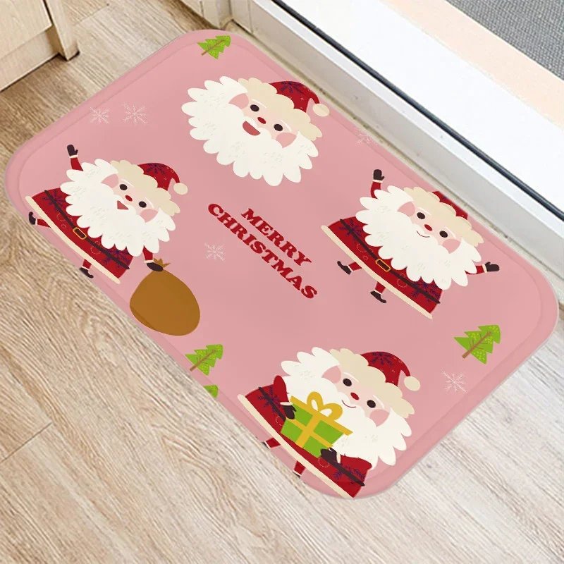 Santa Elk Pattern Doormat Welcome Mat Kitchen Bathroom Entrance Non-Slip Floor Christmas New Year Home Decoration