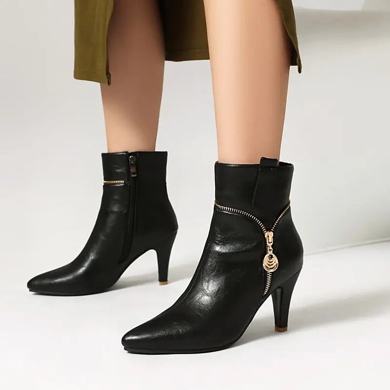 SIMLOVEYO Mature Women Ankle Boots 45 46 47 Decoration Fashion Daily Bota Casual Fashion Hot Female Pointed Toe Thin Heels 8.5cm