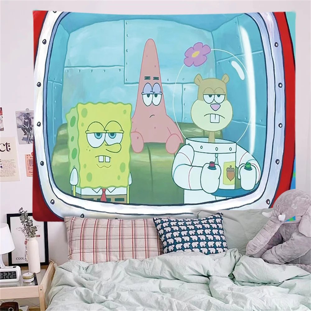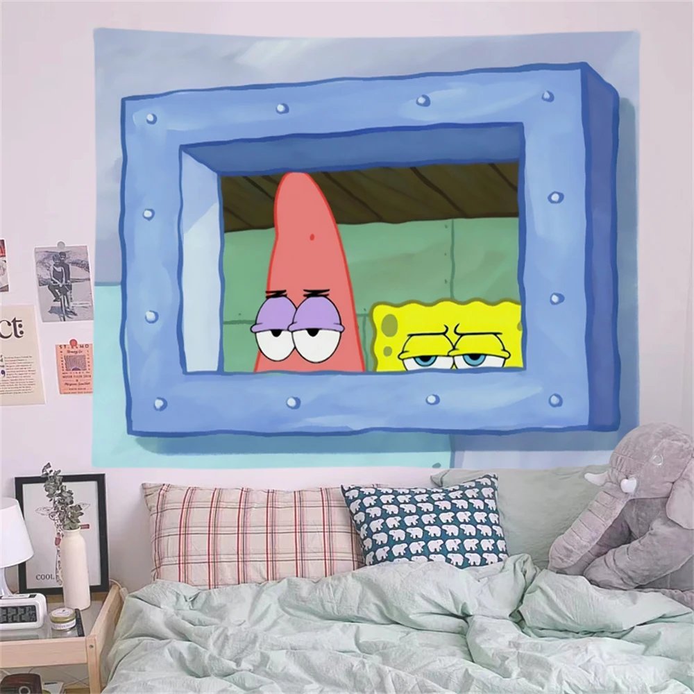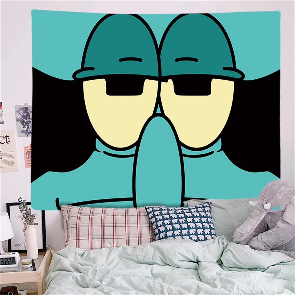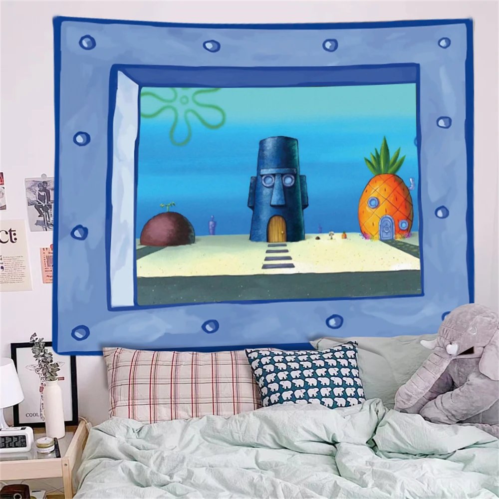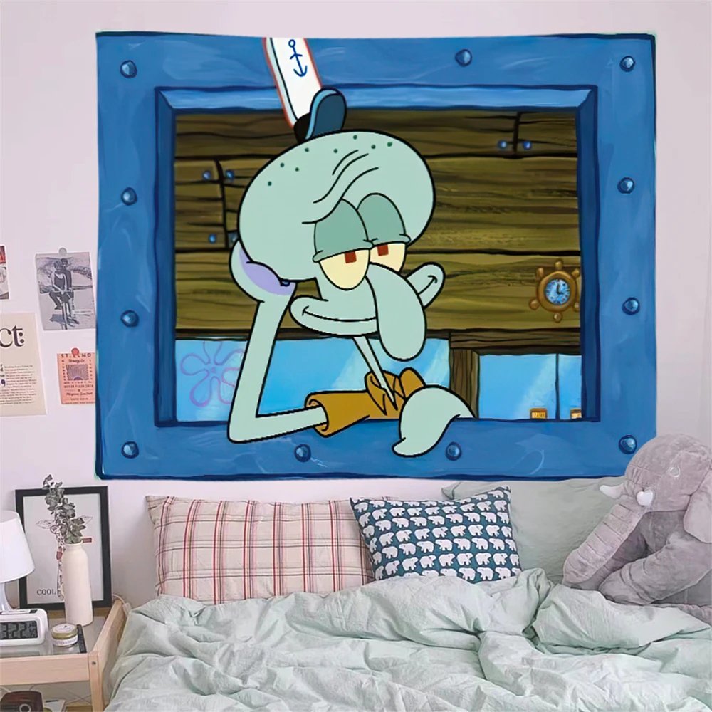 SpongeBob Squidward Cartoon Decoration Background Hanging Cloth Bedroom Tapestry Room Decor Aesthetic Tapestry Wall Hanging