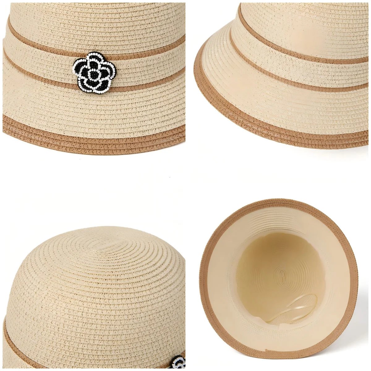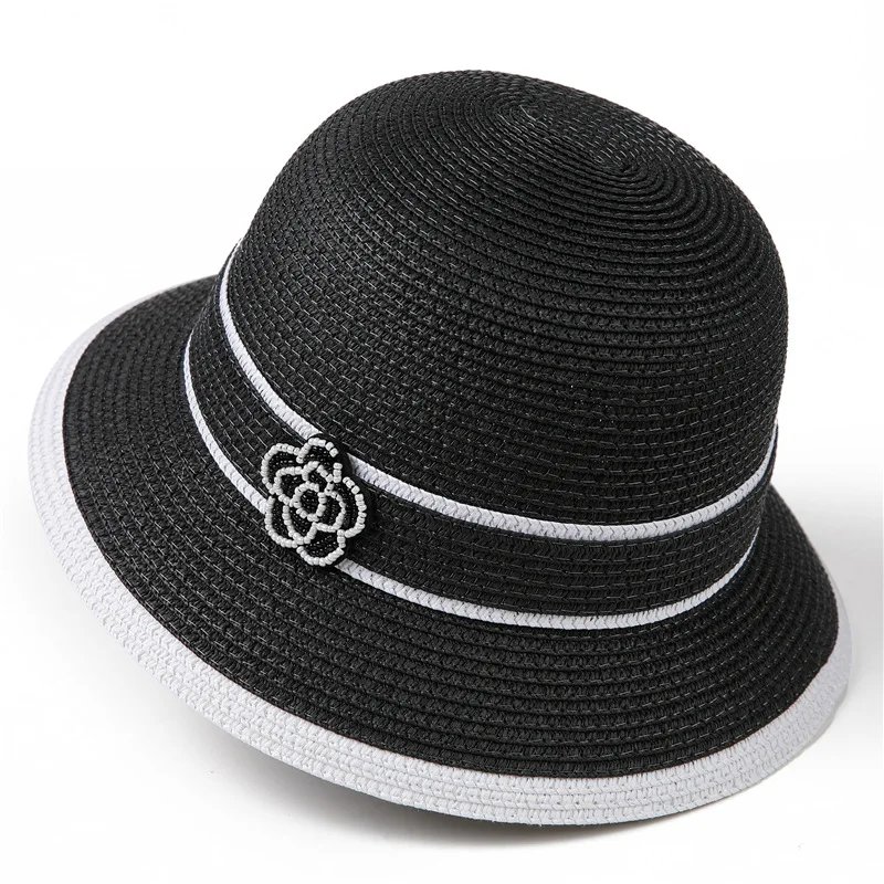 Spring Summer Straw Hat for Women Camellia Luxury Brand Bucket Hat Elegant Floral Elegant Straw Travel Beach Panama Cap Sun Hat