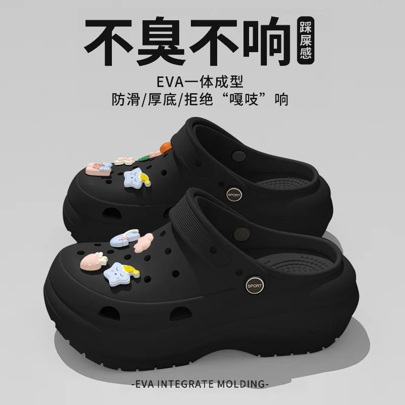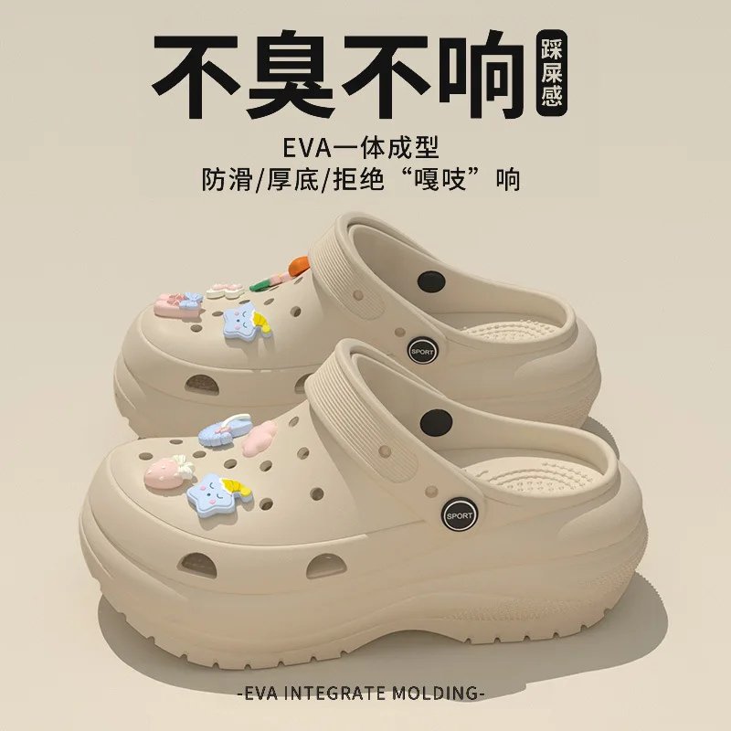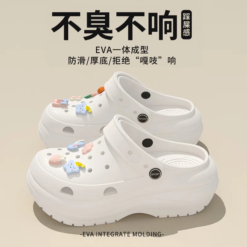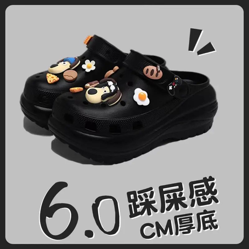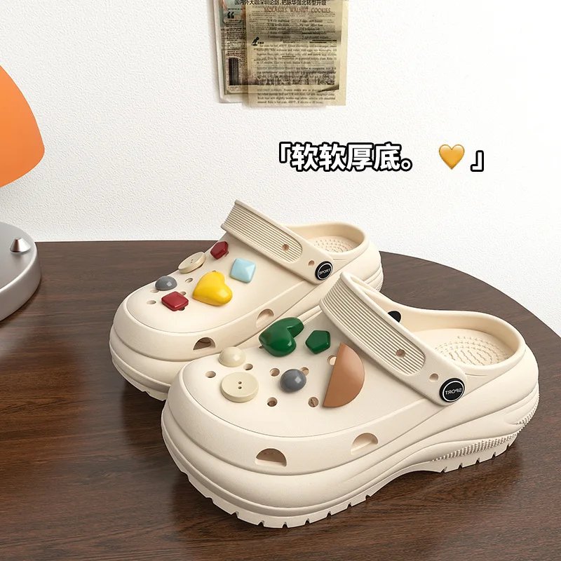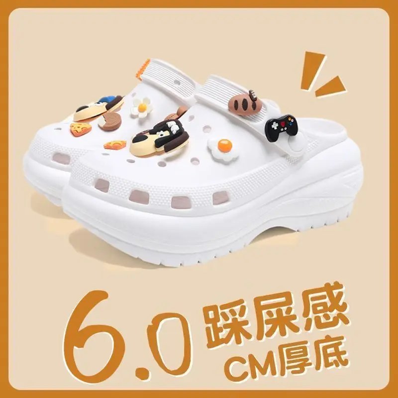 Stepping on shit feeling hole shoes women wear thick soles non-slip in summer 2025 new ins cartoon beach bag head cool