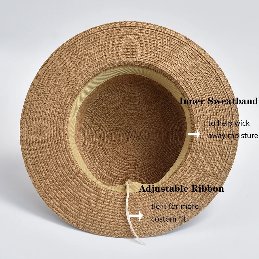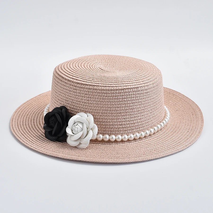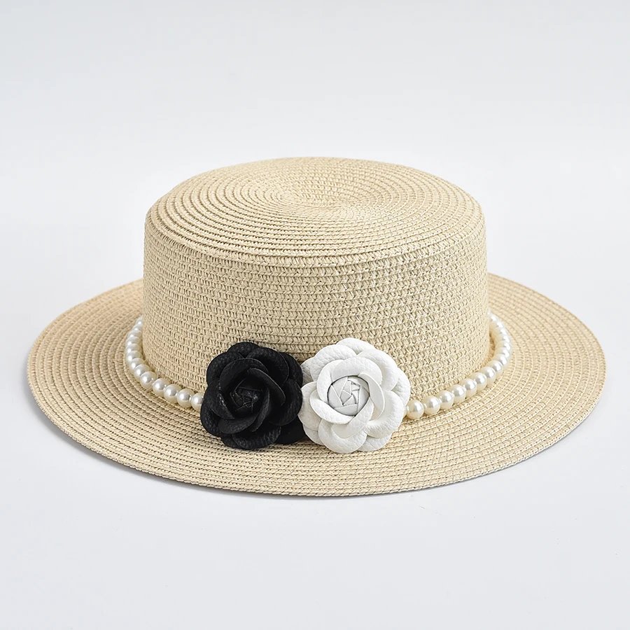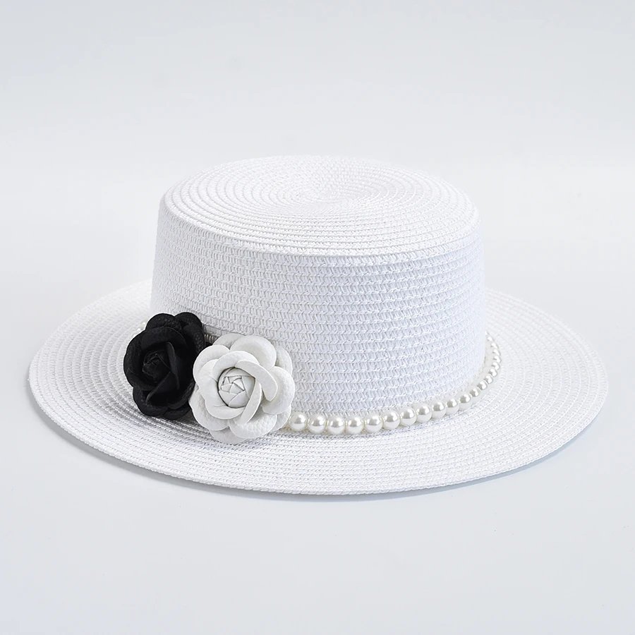 Straw Hats for Women French Style Elegant Holidays Boater Hat Summer Flat Top Beach Sun Hats Gorro