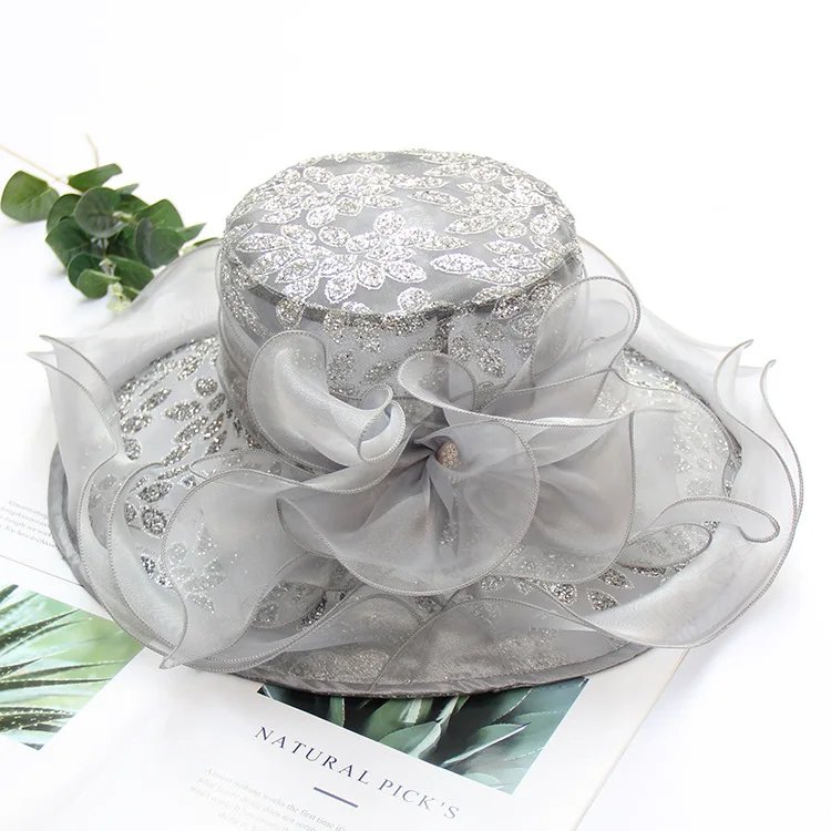 Summer Women's Sun Hat Breathable Foldable Wide Brim with Embroidered Flower Organdy Design 57cm UV Protection Sunshade