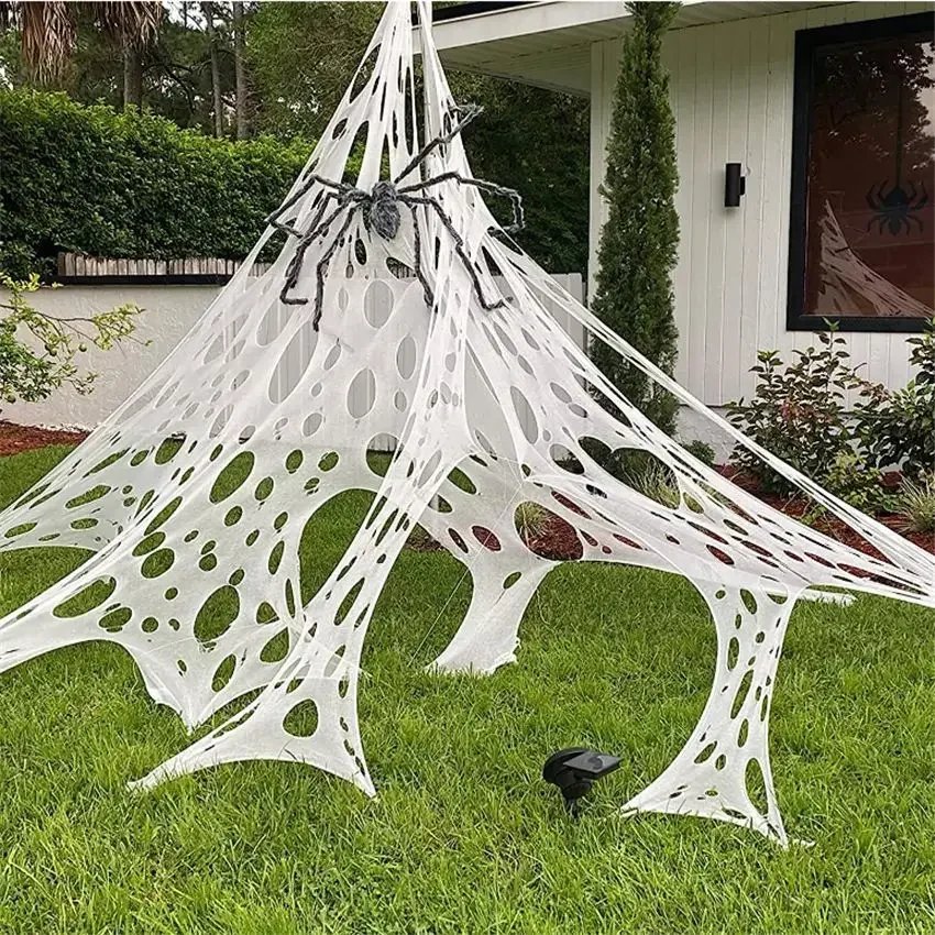 Telaraña elástica gigante para decoración de Halloween, red de telaraña de 20 pies para exteriores, entretiempo interior, reutilizable, fiesta espeluznante imprescindible
