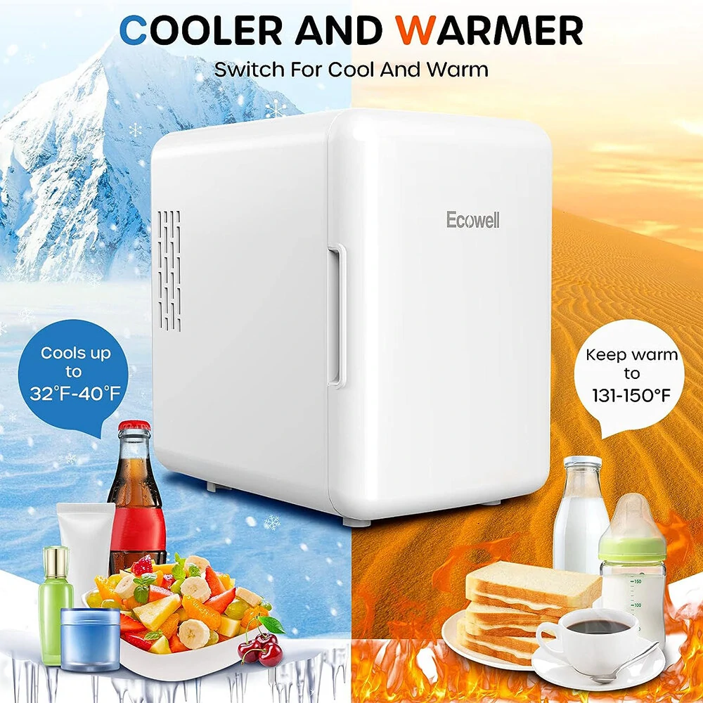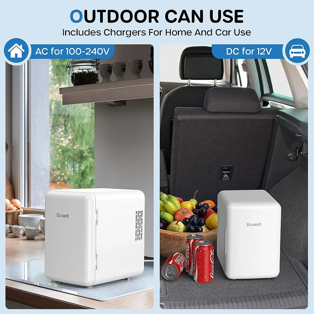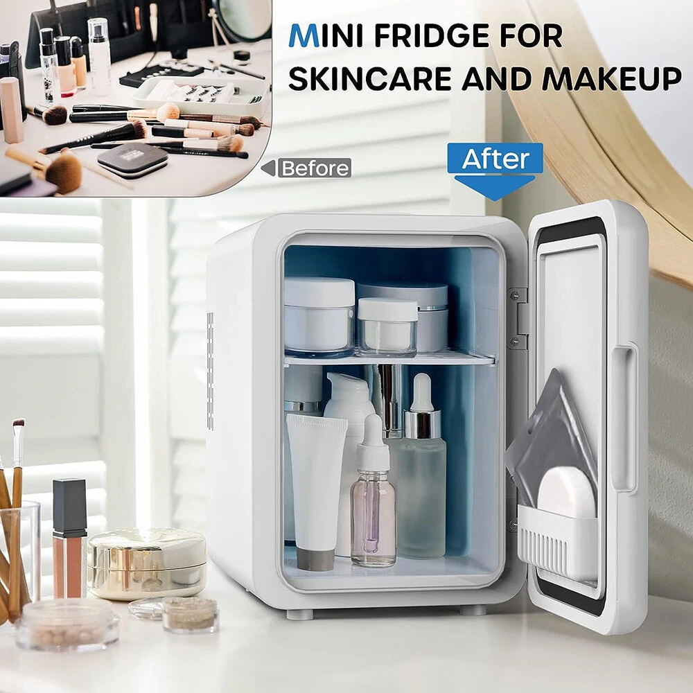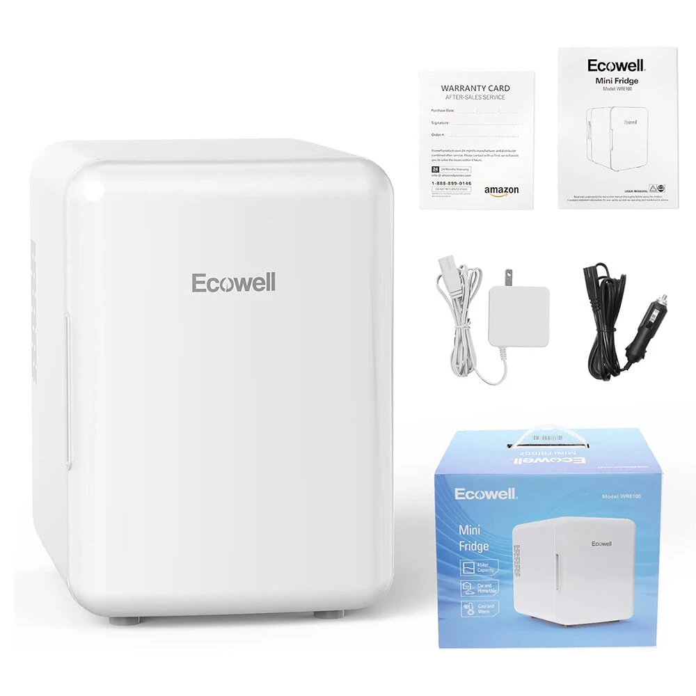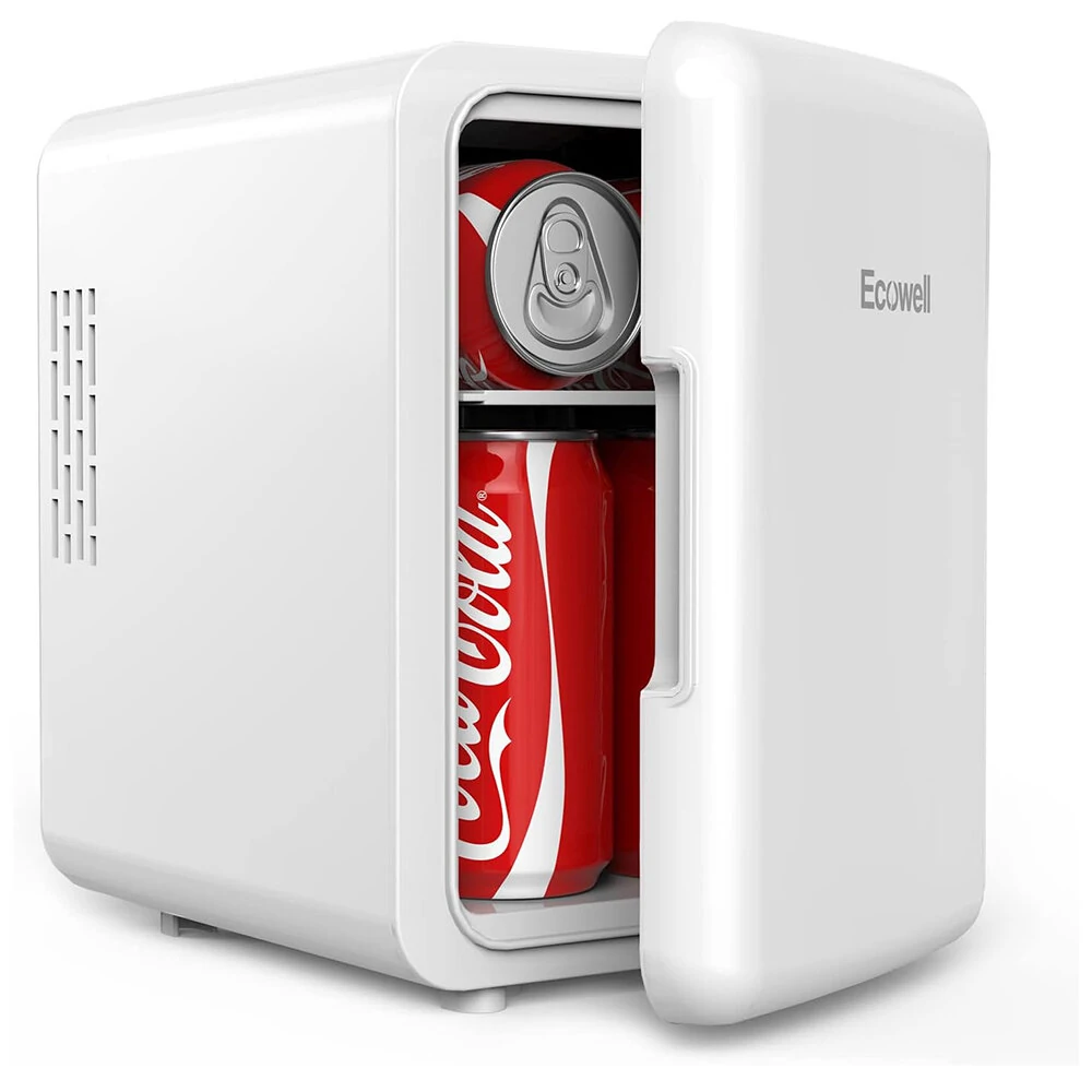 [US Direct] ECOWELL WRE100 Mini Fridge for Bedroom 4L/6 Can Skincare Fridge AC/DC Portable Compact Small Refrigerator for Office Dorm Car Desk for Skin Care Makeup Cosmetic