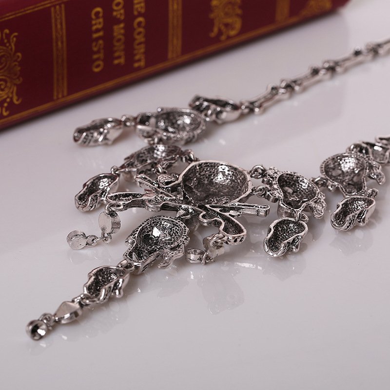 Vintage Skull Tassel Necklace Halloween Punk Sweater Necklace