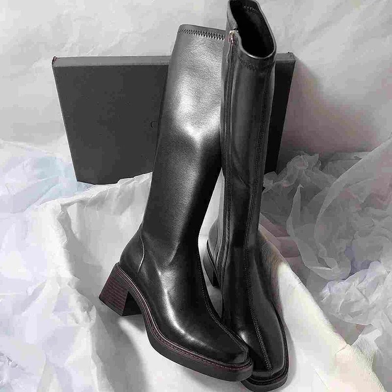 Vintage Thick Heel Women Knee High Boots Fashion Side Zippers Shoes Autumn Winter Ladies Concise Long Botas De Mujer
