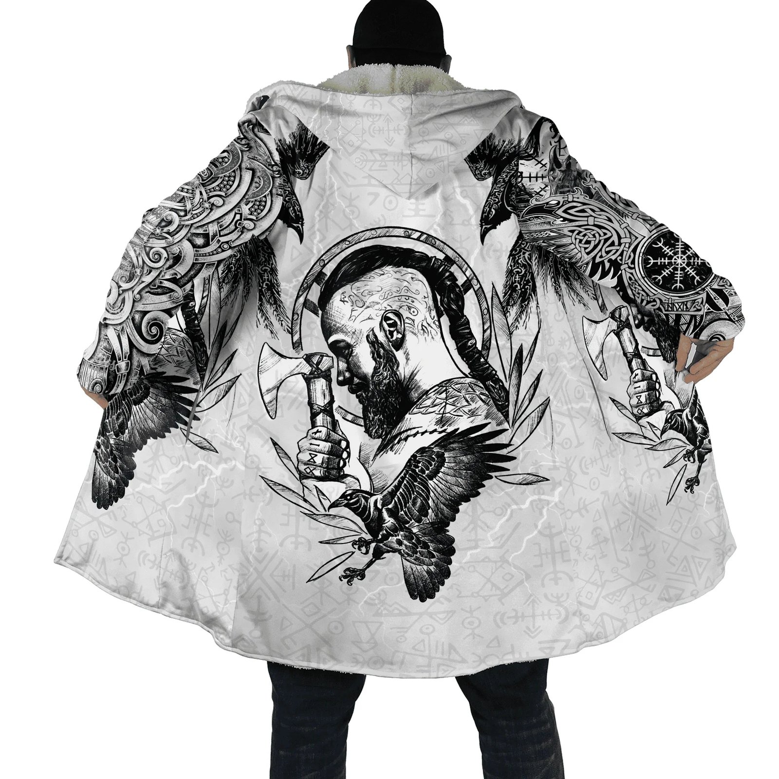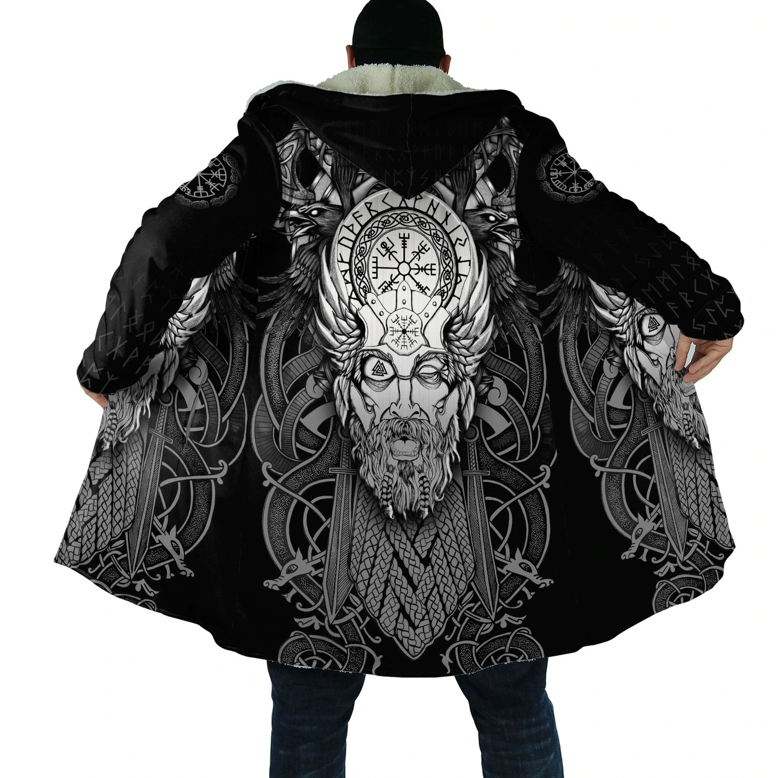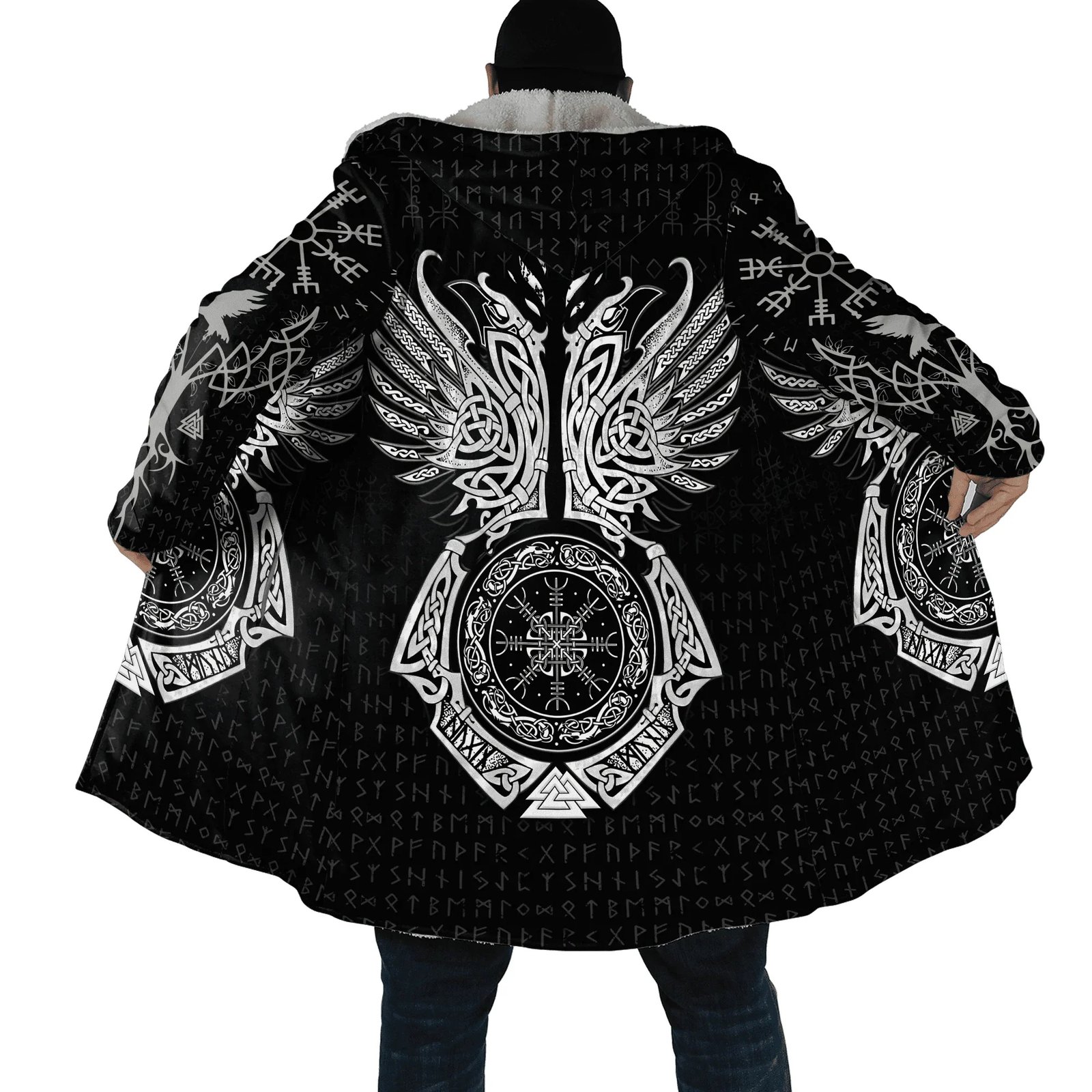 Winter Fashion Mens cloak Norse Odin Raven Tattoo 3D Printed Thick Fleece Hooded Coat Unisex Casual Warm Cape coat DP23