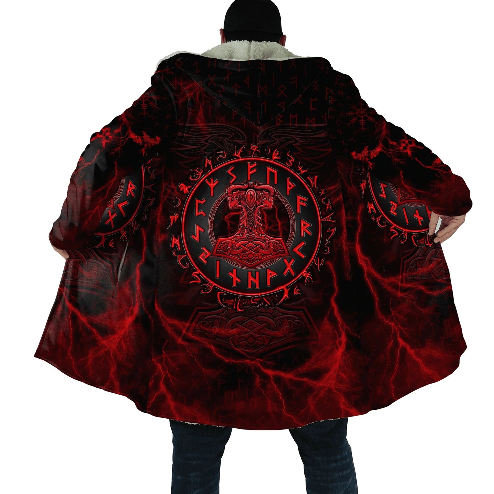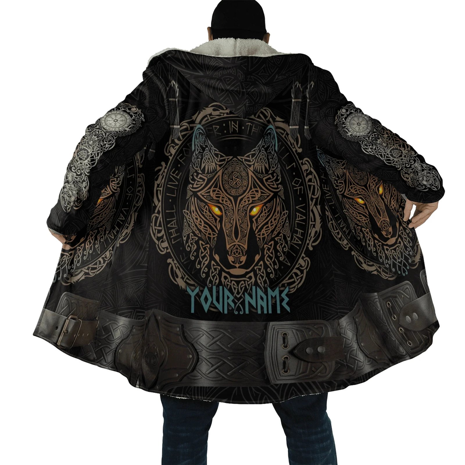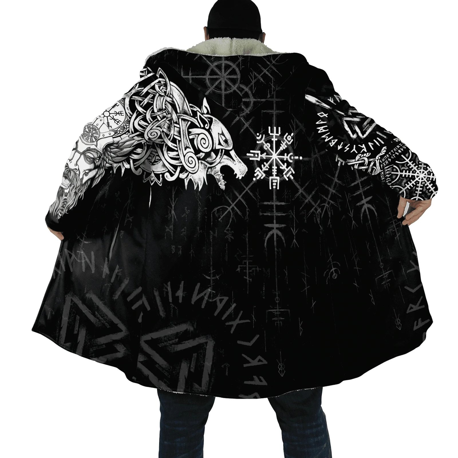 Winter Fashion Mens cloak Norse Odin Raven Tattoo 3D Printed Thick Fleece Hooded Coat Unisex Casual Warm Cape coat DP23