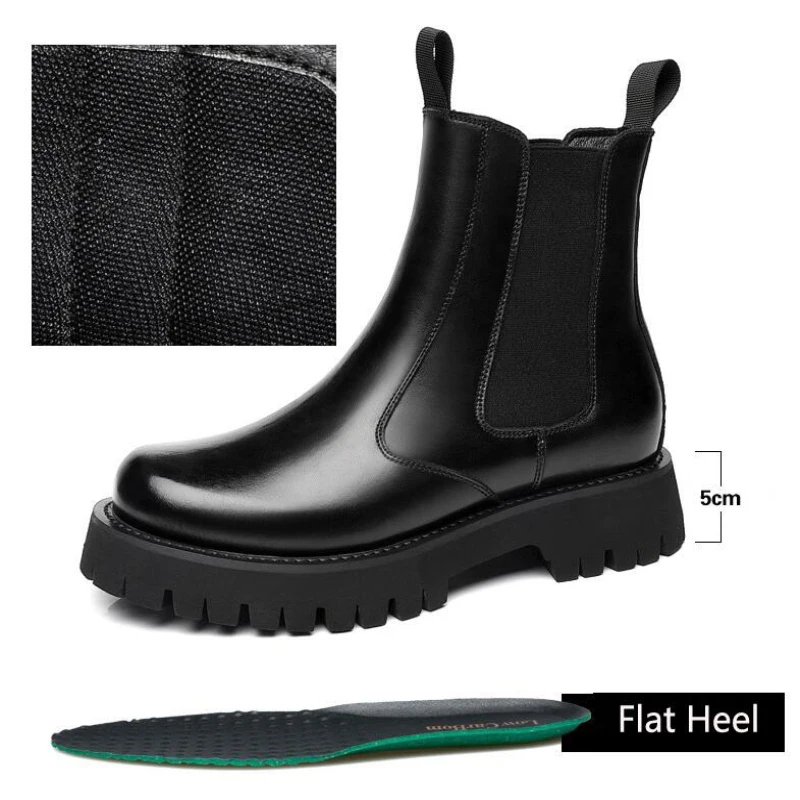 Winter Men Chelsea Rubber Boot Invisible Heel Men Lifted Boots Men Leather Platform Boots Height Increasing