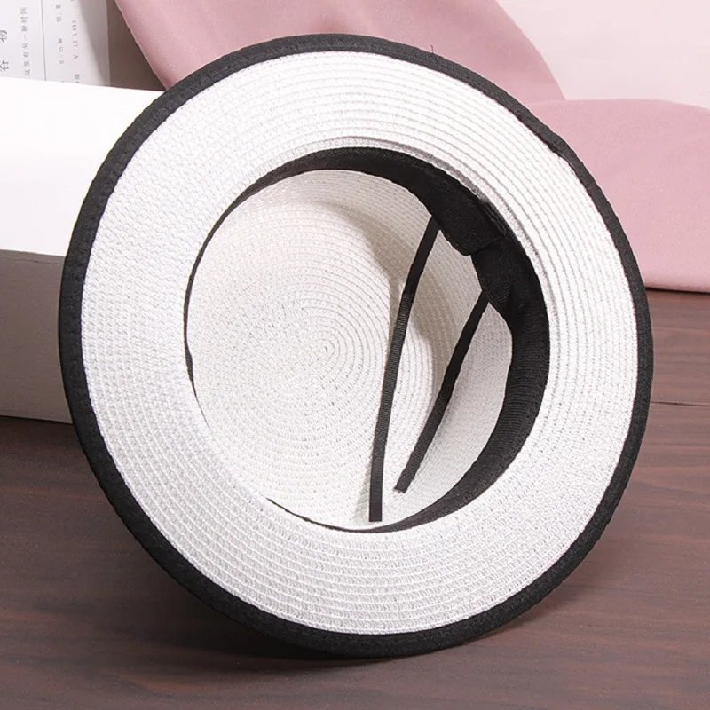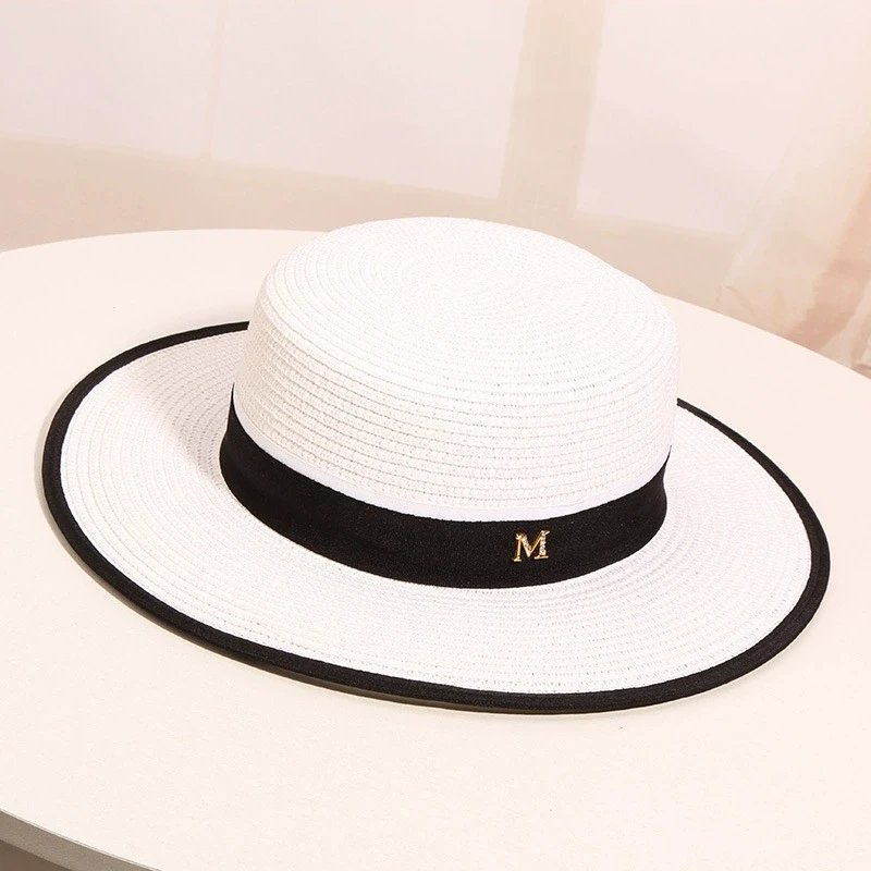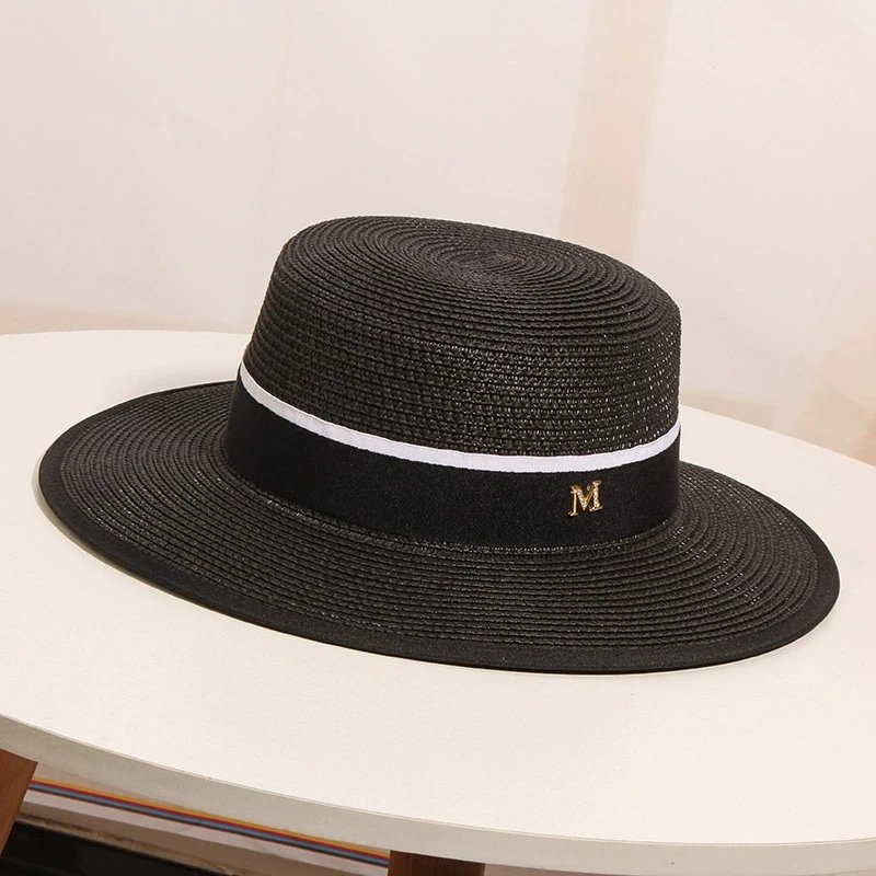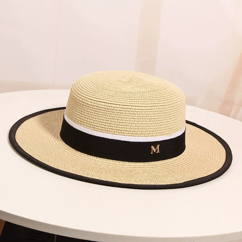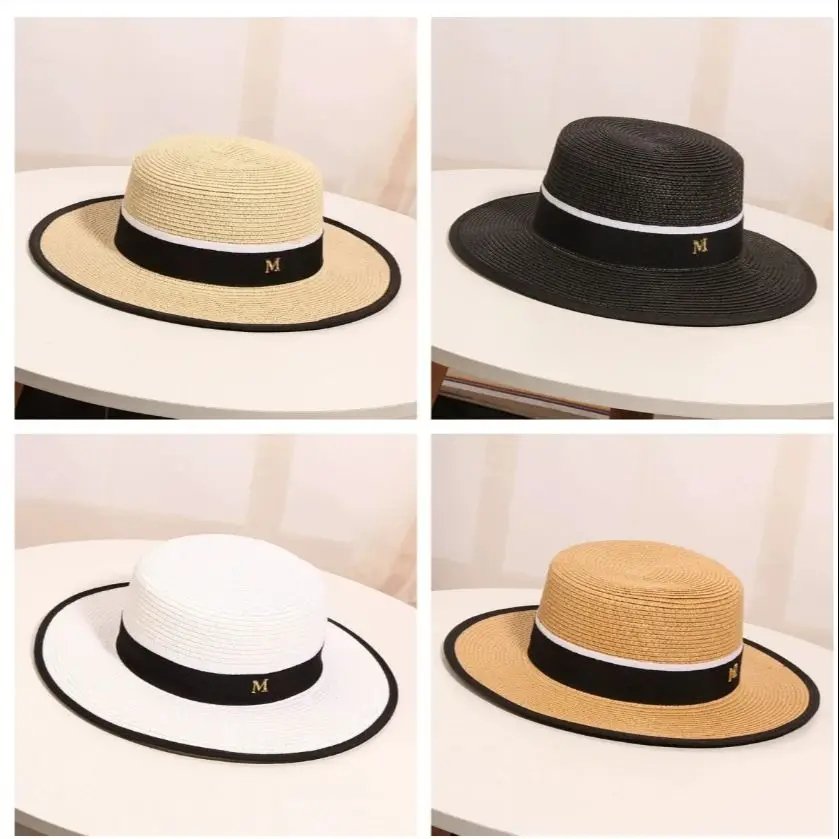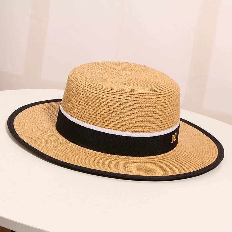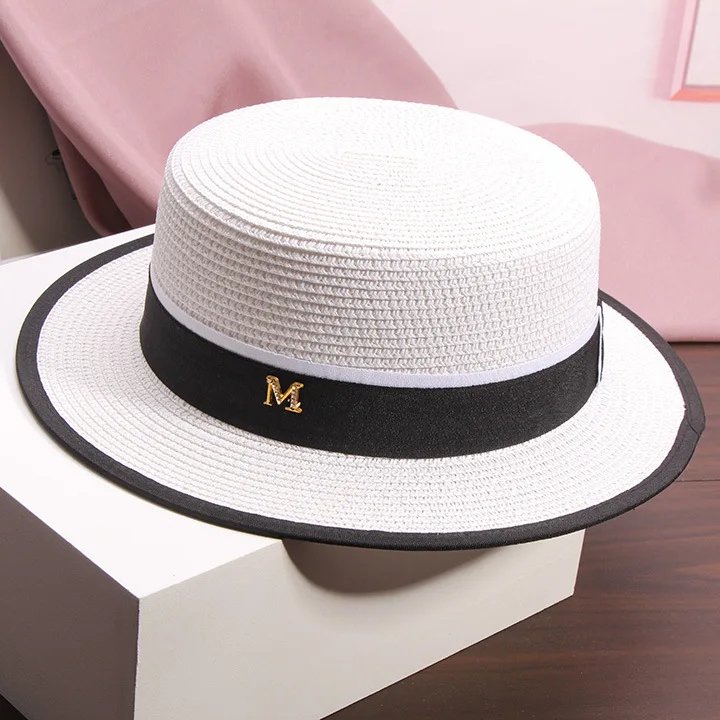 Women's Summer Travel Beach Jazz Hat Seaside Sunshade Sun Protection Straw Hat Flat Top British Hat Straw Woven
