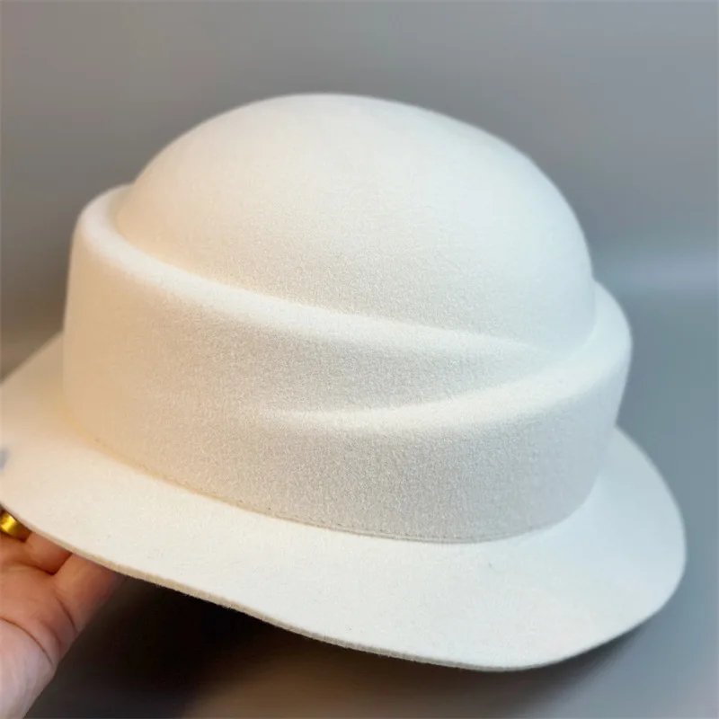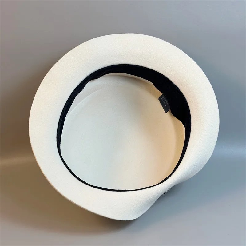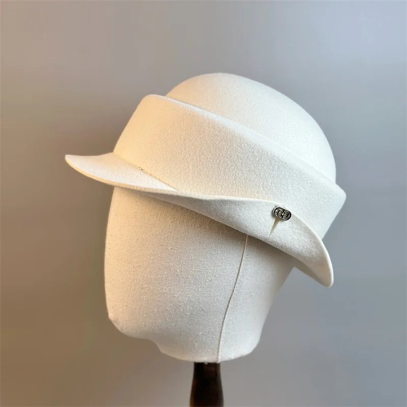 Womens Wool Hat Elegant French Retro Small Flipped Brim Autumn Winter Fashion Accessory