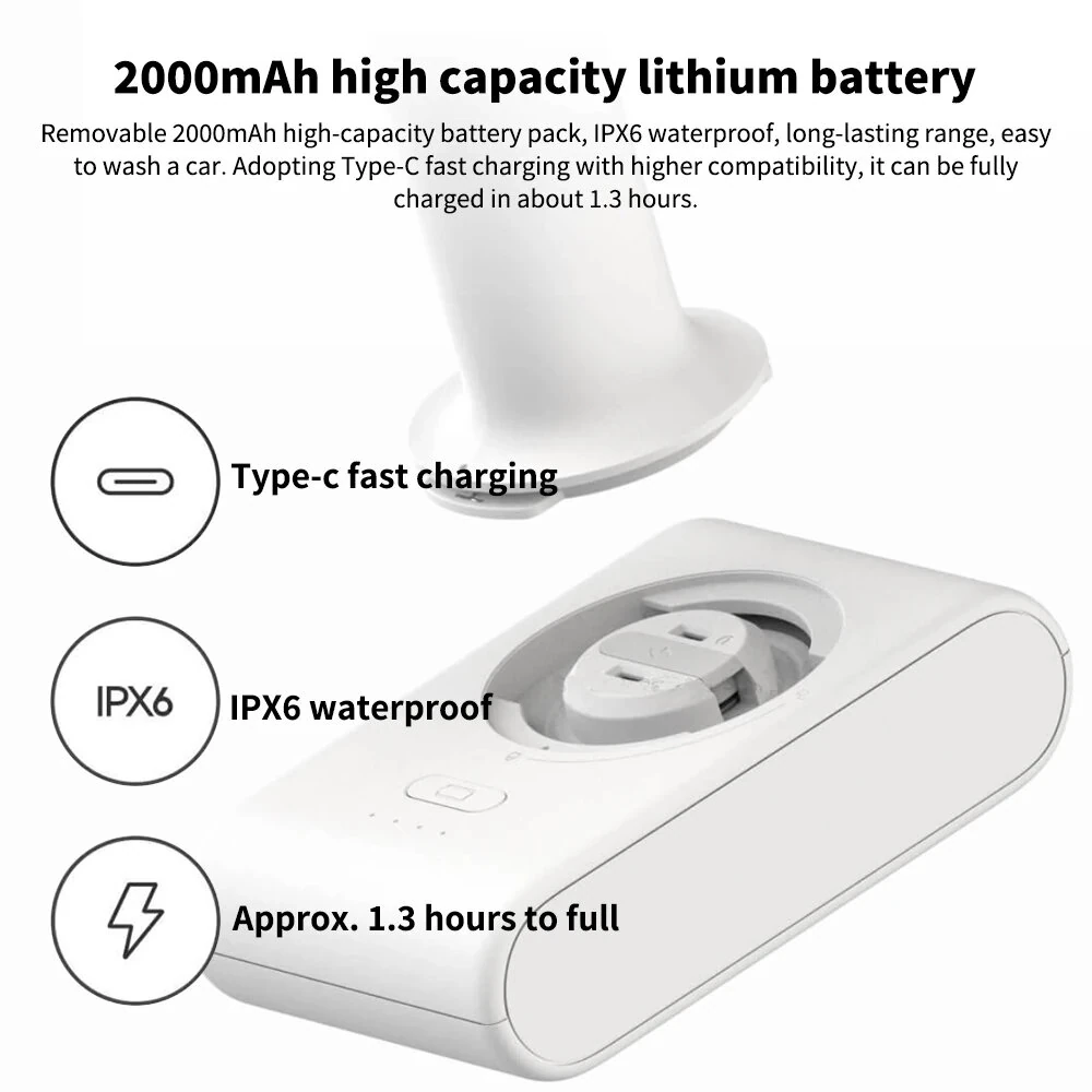 Xiaomi Mijia Cordless Electric Car Washing Gun 2.4MPA High Pressure Washer Foam Nozzle Car Cleaning Care Cordless Car Washing Water Gun