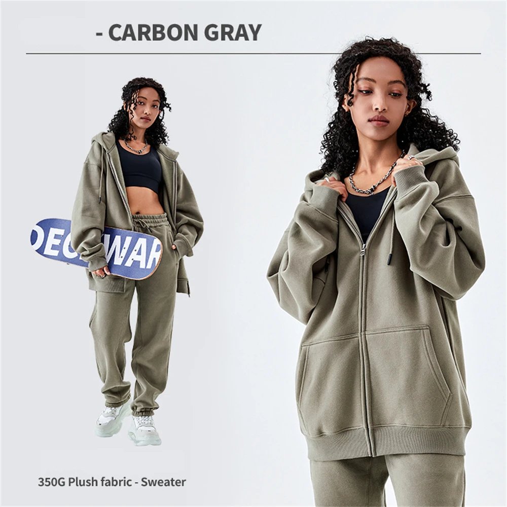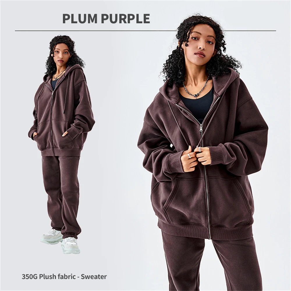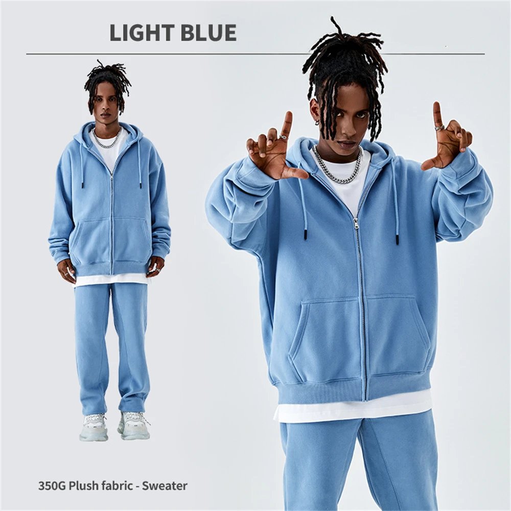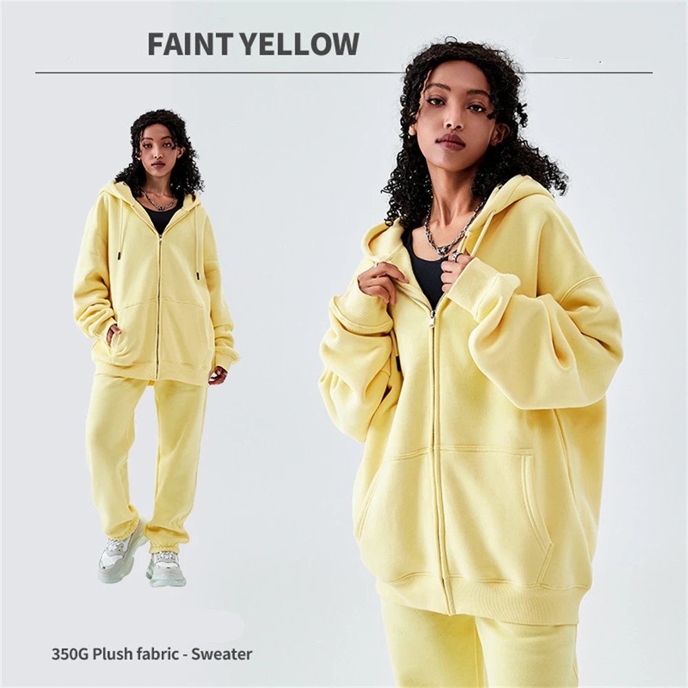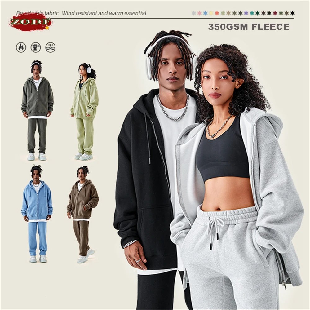 ZODF Basic Winter Men Fleece Zipper Hoodies Unisex Casual Loose 350gsm Warm Solid Hooded Sweatshirts Coats 18 Colors HY0726
